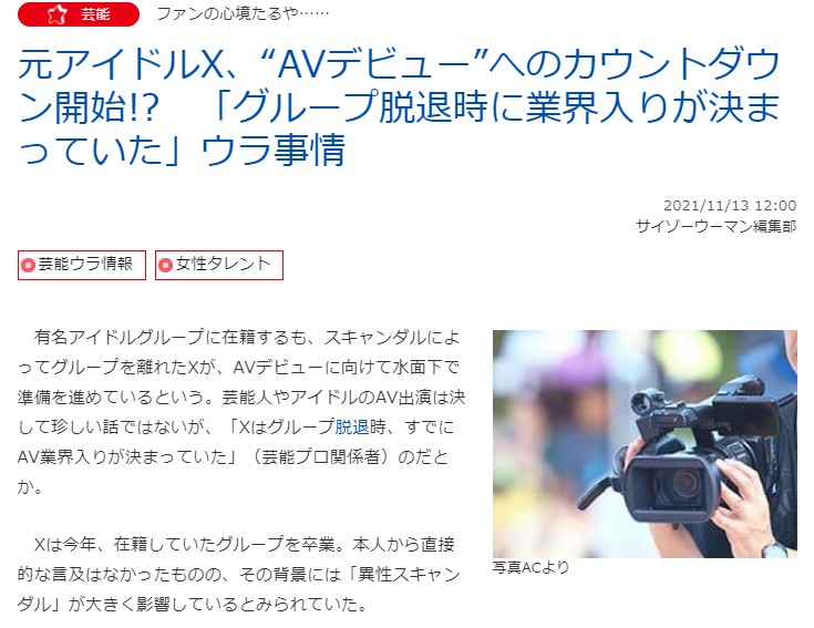 元アイドルX、“AVデビュー”へのカウントダウン開始!?「グループ脱退時に業界入りが決まっていた」ウラ事情・・・【サイゾー】 投稿日 2021年11月14日 12:59:24 (AKB関連) Tweet スポンサードリンク 続きを読む Source: AKB48タイムズ(AKB48まとめ) スポンサードリンク 続きを読む>> 最新情報 【朗報】AKB48のマレーシアイベント、大盛況で無事に終了!!! 【画像】この子アイドルで通用しますか?【HKT487期研究生 江浦優香13才】 【朗報】外ドラマ出演のAKB48山﨑空ちゃんの演技が上手いと話題に【あなたの恋人、強奪します。/そらら】 【朗報】近々新曲のMV撮影が行われる模様!【AKB48】 【朗報】19期研究生全員当たり!!!【AKB48劇場公演デビュー】 【朗報】ベルク×ニップン「AKB48 17期生 もちっとおいしいコラボキャンペーン」がスタート!!! 【速報】最新の久保怜音さんがキタ━━━━(゚∀゚)━━━━!!【元AKB48さとぴー】 【速報】STU48森下舞羽が卒業発表!!【まいはっち】 【AKB48】村山彩希さん、ついにインスタの個人アカウントを作る!!【ゆいリーInstagramデビュー】 【AKB48】クアラルンプール2日目、髙橋彩音ちゃんにぶっかけられて喜ぶ現地民をご覧下さい【マレーシア】 【悲報】地下アイドル現場怖い😱 女優業って正直ファンとしては辛い事ばかりで全然嬉しくないよね?【AKB48/SKE48/NMB48/HKT48/NGT48/STU48】 【朗報】元AKB48チームTP・邱品涵さん、福岡ソフトバンクホークスのチアガールに転身し大成功!!! 【AKB48】卒業記念生写真を出せるメンバーの基準ってどうなってんの? 【朗報】元AKB48奥原妃奈子さん、渋谷の大型ビジョンに現れる!【元チーム8ひーな】 昨日は岡田パッパの誕生日です【元AKB48岡田奈々】 【悲報】アイドルさん、ビラ配り中にまたしても酷い目に遭ってしまう【カリギュラのぶちあげイエロー担当ゆめぴりか】 【朗報】NGT48奈良未遥、ファースト写真集「こんな風に見られているのか?」7月1日発売決定!!! 【KLP48】クアラルンプール2日目に起こりそうなこと【AKB48】 今度こそ正真正銘のずっきーの谷間キタあああああ?【AKB48山内瑞葵】 【衝撃】松井珠理奈がアイドル復帰!マレーシア初の48姉妹グループ・KLP48プレイングマネージャーに就任決定!正式発表【元SKE48】 【AKB48】オリジナルステッカー販売終了のお知らせ【ピンポン玉チャレンジ】 【朗報】元馬嘉伶の真楪伶が1st写真集を発売決定!!【元AKB48・元まちゃりん・奇跡と出会った瞬間】 初めてAKB48劇場に入る私にアドバイス下さい!! スクエニ『トワツガイ』が僅か1年でサービス終了!大西桃香、渡辺みり愛、長谷川玲奈が実写化したのに【舞台化・元AKB48/元乃木坂46/元NGT48】 【悲報】=LOVE大谷映美里、体調不良のため本日の「個別お話し会」を欠席・・・【指原莉乃プロデュースアイドル・イコラブ・イコールラブ】 「ゆいずき」のダブルセンターというAKB48最強のカード【小栗有以・山内瑞葵】 【朗報】AKB48橋本陽菜、マレーシア移籍は断ったけど、旅行気分の数日間なら喜ぶ!!【はるぴょん】 【AKB48】メンバーが公演後に受け取ったファンレターをうpしてるのだが、どう思う? 【AKB48】正鋳真優「いつかAKBにチーム制を復活させたい」【まさるさん】 【朗報】AKB48行天優莉奈&吉川七瀬のお散歩番組キタ━(゚∀゚)━!【千葉テレビ放送・市町村てくてく散歩・チーム8】 【悲報?】指原莉乃さん、「ワロタ」とかいう死語を使ってしまうwwwww【元AKB48/元HKT48さっしー】
