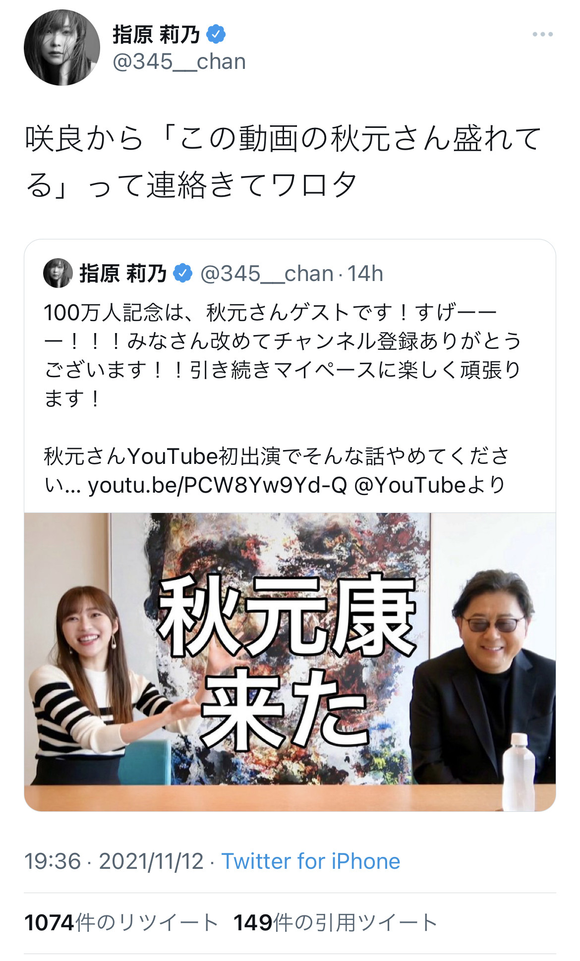 【悲報?】指原莉乃さん、「ワロタ」とかいう死語を使ってしまうwwwww【元AKB48/元HKT48さっしー】 投稿日 2021年11月14日 13:58:52 (AKB関連) Tweet スポンサードリンク 続きを読む Source: AKB48タイムズ(AKB48まとめ) スポンサードリンク 続きを読む>> 最新情報 【朗報】AKB48のマレーシアイベント、大盛況で無事に終了!!! 【画像】この子アイドルで通用しますか?【HKT487期研究生 江浦優香13才】 【朗報】外ドラマ出演のAKB48山﨑空ちゃんの演技が上手いと話題に【あなたの恋人、強奪します。/そらら】 【朗報】近々新曲のMV撮影が行われる模様!【AKB48】 【朗報】19期研究生全員当たり!!!【AKB48劇場公演デビュー】 【朗報】ベルク×ニップン「AKB48 17期生 もちっとおいしいコラボキャンペーン」がスタート!!! 【速報】最新の久保怜音さんがキタ━━━━(゚∀゚)━━━━!!【元AKB48さとぴー】 【速報】STU48森下舞羽が卒業発表!!【まいはっち】 【AKB48】村山彩希さん、ついにインスタの個人アカウントを作る!!【ゆいリーInstagramデビュー】 【AKB48】クアラルンプール2日目、髙橋彩音ちゃんにぶっかけられて喜ぶ現地民をご覧下さい【マレーシア】 【悲報】地下アイドル現場怖い😱 女優業って正直ファンとしては辛い事ばかりで全然嬉しくないよね?【AKB48/SKE48/NMB48/HKT48/NGT48/STU48】 【朗報】元AKB48チームTP・邱品涵さん、福岡ソフトバンクホークスのチアガールに転身し大成功!!! 【AKB48】卒業記念生写真を出せるメンバーの基準ってどうなってんの? 【朗報】元AKB48奥原妃奈子さん、渋谷の大型ビジョンに現れる!【元チーム8ひーな】 昨日は岡田パッパの誕生日です【元AKB48岡田奈々】 【悲報】アイドルさん、ビラ配り中にまたしても酷い目に遭ってしまう【カリギュラのぶちあげイエロー担当ゆめぴりか】 【朗報】NGT48奈良未遥、ファースト写真集「こんな風に見られているのか?」7月1日発売決定!!! 【KLP48】クアラルンプール2日目に起こりそうなこと【AKB48】 今度こそ正真正銘のずっきーの谷間キタあああああ?【AKB48山内瑞葵】 【衝撃】松井珠理奈がアイドル復帰!マレーシア初の48姉妹グループ・KLP48プレイングマネージャーに就任決定!正式発表【元SKE48】 【AKB48】オリジナルステッカー販売終了のお知らせ【ピンポン玉チャレンジ】 【朗報】元馬嘉伶の真楪伶が1st写真集を発売決定!!【元AKB48・元まちゃりん・奇跡と出会った瞬間】 初めてAKB48劇場に入る私にアドバイス下さい!! スクエニ『トワツガイ』が僅か1年でサービス終了!大西桃香、渡辺みり愛、長谷川玲奈が実写化したのに【舞台化・元AKB48/元乃木坂46/元NGT48】 【悲報】=LOVE大谷映美里、体調不良のため本日の「個別お話し会」を欠席・・・【指原莉乃プロデュースアイドル・イコラブ・イコールラブ】 「ゆいずき」のダブルセンターというAKB48最強のカード【小栗有以・山内瑞葵】 【朗報】AKB48橋本陽菜、マレーシア移籍は断ったけど、旅行気分の数日間なら喜ぶ!!【はるぴょん】 【AKB48】メンバーが公演後に受け取ったファンレターをうpしてるのだが、どう思う? 【AKB48】正鋳真優「いつかAKBにチーム制を復活させたい」【まさるさん】 元アイドルX、“AVデビュー”へのカウントダウン開始!?「グループ脱退時に業界入りが決まっていた」ウラ事情・・・【サイゾー】 彡(●)(●)「すげえな乃木坂で独占してる」【乃木坂46写真集】