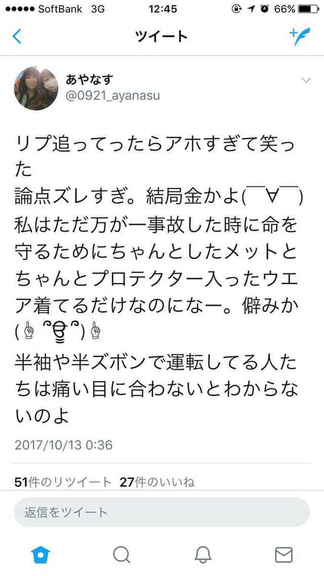 女も「ウォッシャーで汚れたじゃねーかボケ!」ってすり抜けの時サイドミラー叩き割っていけよ