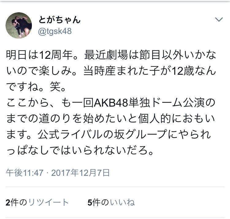 【朗報】戸賀崎智信「もう一回AKB48単独でドーム公演へ。坂グループにやられっぱなしではいられないだろ」【とがちゃん】 投稿日 2017年12月8日 03:40:41 (AKB関連) Tweet スポンサードリンク 続きを読む Source: AKB48タイムズ(AKB48まとめ) スポンサードリンク 続きを読む>> 最新情報 【朗報】AKB48のマレーシアイベント、大盛況で無事に終了!!! 【画像】この子アイドルで通用しますか?【HKT487期研究生 江浦優香13才】 【朗報】外ドラマ出演のAKB48山﨑空ちゃんの演技が上手いと話題に【あなたの恋人、強奪します。/そらら】 【朗報】近々新曲のMV撮影が行われる模様!【AKB48】 【朗報】19期研究生全員当たり!!!【AKB48劇場公演デビュー】 【朗報】ベルク×ニップン「AKB48 17期生 もちっとおいしいコラボキャンペーン」がスタート!!! 【速報】最新の久保怜音さんがキタ━━━━(゚∀゚)━━━━!!【元AKB48さとぴー】 【速報】STU48森下舞羽が卒業発表!!【まいはっち】 【AKB48】村山彩希さん、ついにインスタの個人アカウントを作る!!【ゆいリーInstagramデビュー】 【AKB48】クアラルンプール2日目、髙橋彩音ちゃんにぶっかけられて喜ぶ現地民をご覧下さい【マレーシア】 【悲報】地下アイドル現場怖い😱 女優業って正直ファンとしては辛い事ばかりで全然嬉しくないよね?【AKB48/SKE48/NMB48/HKT48/NGT48/STU48】 【朗報】元AKB48チームTP・邱品涵さん、福岡ソフトバンクホークスのチアガールに転身し大成功!!! 【AKB48】卒業記念生写真を出せるメンバーの基準ってどうなってんの? 【朗報】元AKB48奥原妃奈子さん、渋谷の大型ビジョンに現れる!【元チーム8ひーな】 昨日は岡田パッパの誕生日です【元AKB48岡田奈々】 【悲報】アイドルさん、ビラ配り中にまたしても酷い目に遭ってしまう【カリギュラのぶちあげイエロー担当ゆめぴりか】 【朗報】NGT48奈良未遥、ファースト写真集「こんな風に見られているのか?」7月1日発売決定!!! 【KLP48】クアラルンプール2日目に起こりそうなこと【AKB48】 今度こそ正真正銘のずっきーの谷間キタあああああ?【AKB48山内瑞葵】 【衝撃】松井珠理奈がアイドル復帰!マレーシア初の48姉妹グループ・KLP48プレイングマネージャーに就任決定!正式発表【元SKE48】 【AKB48】オリジナルステッカー販売終了のお知らせ【ピンポン玉チャレンジ】 【朗報】元馬嘉伶の真楪伶が1st写真集を発売決定!!【元AKB48・元まちゃりん・奇跡と出会った瞬間】 初めてAKB48劇場に入る私にアドバイス下さい!! スクエニ『トワツガイ』が僅か1年でサービス終了!大西桃香、渡辺みり愛、長谷川玲奈が実写化したのに【舞台化・元AKB48/元乃木坂46/元NGT48】 【悲報】=LOVE大谷映美里、体調不良のため本日の「個別お話し会」を欠席・・・【指原莉乃プロデュースアイドル・イコラブ・イコールラブ】 「ゆいずき」のダブルセンターというAKB48最強のカード【小栗有以・山内瑞葵】 【朗報】AKB48橋本陽菜、マレーシア移籍は断ったけど、旅行気分の数日間なら喜ぶ!!【はるぴょん】 【AKB48】メンバーが公演後に受け取ったファンレターをうpしてるのだが、どう思う? 【AKB48】正鋳真優「いつかAKBにチーム制を復活させたい」【まさるさん】 【放送事故】 フジFNS歌謡祭 欅坂46・平手友梨奈の病的ダンスに驚愕 「鳥肌立った」「今の時代の天才」 椎名林檎が今や音楽業界の大御所になってる