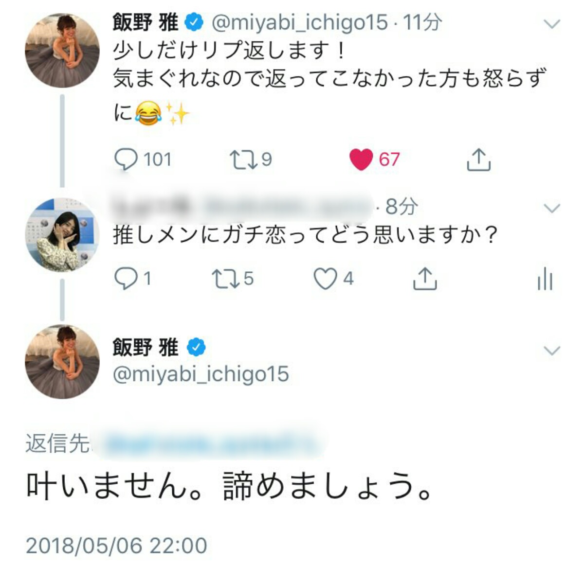 元AKB48メンバー飯野雅(ガチ恋は)「叶いません。諦めましょう。」 投稿日 2018年5月8日 13:39:43 (AKB関連) Tweet スポンサードリンク 続きを読む Source: AKB48タイムズ(AKB48まとめ) スポンサードリンク 続きを読む>> 最新情報 【朗報】AKB48のマレーシアイベント、大盛況で無事に終了!!! 【画像】この子アイドルで通用しますか?【HKT487期研究生 江浦優香13才】 【朗報】外ドラマ出演のAKB48山﨑空ちゃんの演技が上手いと話題に【あなたの恋人、強奪します。/そらら】 【朗報】近々新曲のMV撮影が行われる模様!【AKB48】 【朗報】19期研究生全員当たり!!!【AKB48劇場公演デビュー】 【朗報】ベルク×ニップン「AKB48 17期生 もちっとおいしいコラボキャンペーン」がスタート!!! 【速報】最新の久保怜音さんがキタ━━━━(゚∀゚)━━━━!!【元AKB48さとぴー】 【速報】STU48森下舞羽が卒業発表!!【まいはっち】 【AKB48】村山彩希さん、ついにインスタの個人アカウントを作る!!【ゆいリーInstagramデビュー】 【AKB48】クアラルンプール2日目、髙橋彩音ちゃんにぶっかけられて喜ぶ現地民をご覧下さい【マレーシア】 【悲報】地下アイドル現場怖い😱 女優業って正直ファンとしては辛い事ばかりで全然嬉しくないよね?【AKB48/SKE48/NMB48/HKT48/NGT48/STU48】 【朗報】元AKB48チームTP・邱品涵さん、福岡ソフトバンクホークスのチアガールに転身し大成功!!! 【AKB48】卒業記念生写真を出せるメンバーの基準ってどうなってんの? 【朗報】元AKB48奥原妃奈子さん、渋谷の大型ビジョンに現れる!【元チーム8ひーな】 昨日は岡田パッパの誕生日です【元AKB48岡田奈々】 【悲報】アイドルさん、ビラ配り中にまたしても酷い目に遭ってしまう【カリギュラのぶちあげイエロー担当ゆめぴりか】 【朗報】NGT48奈良未遥、ファースト写真集「こんな風に見られているのか?」7月1日発売決定!!! 【KLP48】クアラルンプール2日目に起こりそうなこと【AKB48】 今度こそ正真正銘のずっきーの谷間キタあああああ?【AKB48山内瑞葵】 【衝撃】松井珠理奈がアイドル復帰!マレーシア初の48姉妹グループ・KLP48プレイングマネージャーに就任決定!正式発表【元SKE48】 【AKB48】オリジナルステッカー販売終了のお知らせ【ピンポン玉チャレンジ】 【朗報】元馬嘉伶の真楪伶が1st写真集を発売決定!!【元AKB48・元まちゃりん・奇跡と出会った瞬間】 初めてAKB48劇場に入る私にアドバイス下さい!! スクエニ『トワツガイ』が僅か1年でサービス終了!大西桃香、渡辺みり愛、長谷川玲奈が実写化したのに【舞台化・元AKB48/元乃木坂46/元NGT48】 【悲報】=LOVE大谷映美里、体調不良のため本日の「個別お話し会」を欠席・・・【指原莉乃プロデュースアイドル・イコラブ・イコールラブ】 「ゆいずき」のダブルセンターというAKB48最強のカード【小栗有以・山内瑞葵】 【朗報】AKB48橋本陽菜、マレーシア移籍は断ったけど、旅行気分の数日間なら喜ぶ!!【はるぴょん】 【AKB48】メンバーが公演後に受け取ったファンレターをうpしてるのだが、どう思う? 【AKB48】正鋳真優「いつかAKBにチーム制を復活させたい」【まさるさん】 【AKB48】岩立沙穂「今までで一番気合いを入れて臨んでいる総選挙です。一緒に“選抜”目指してください!」【2018年第10回AKB48 53rdシングル世界選抜総選挙】 【速報】菜々緒に再び「整形疑惑」が持ち上がった理由wwwww