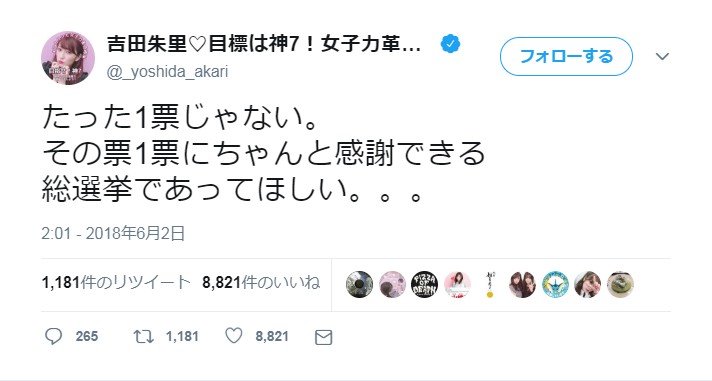 NMB48吉田朱里「たった1票じゃない。その票1票にちゃんと感謝できる 総選挙であってほしい。。。」(アカリン)【2018年第10回AKB48 53rdシングル世界選抜総選挙】