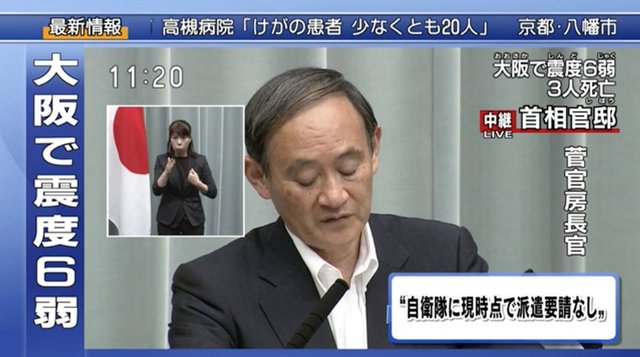 【地震】菅官房長官が枚方市を「まいかたし」と読んでしまう