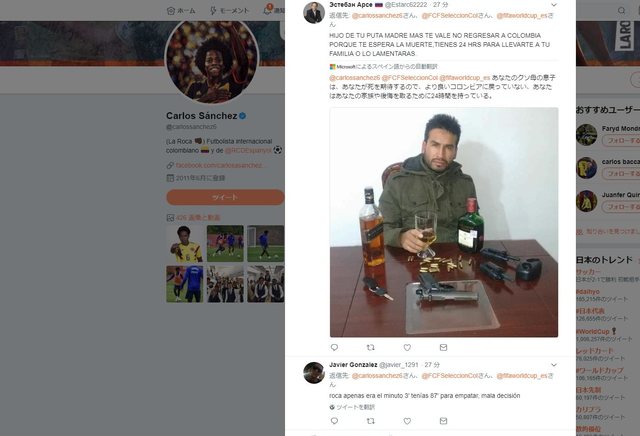 【サッカー】前半3分でレッドカードのコロンビア代表MFサンチェス、W杯史上2番目のスピード退場★2
