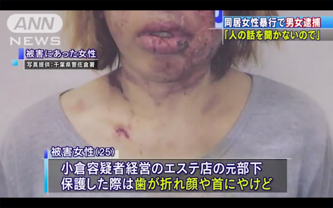 千葉県酒々井(しすい)町の自宅で同居していた無職の女性(25)に熱湯をかけたり、ペンチで歯を折るなどの暴行を2カ月以上にわたって加えていたとして、自称会社員の高村良容疑者(28)と、内縁の妻で自称自営業の小倉実里容疑者(27)が傷害容疑で県警佐倉署に逮捕された。小倉容疑者は女性が以前働いていたエステ店の元上司で、家庭の事情で住む場所に困っていた女性を同居させていた。2人は「熱湯をかけた覚えはない」「道具は使用していない」などと、容疑を一部否認しているという。
