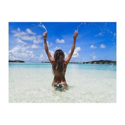 SNSでビキニ姿で南国を楽しんだ様子を明かしていたみちょぱ。この日は青い空と海をバックにたたずむ自身のビキニショットを披露し、美バストと引き締まった美くびれをあらわに。また健康的に焼けた肌を披露したみちょぱは「みんなに黒い黒い言われ続ける!日焼け完璧だけど流石にこの焼け方は皮がめくれそう、、笑」とコメント。