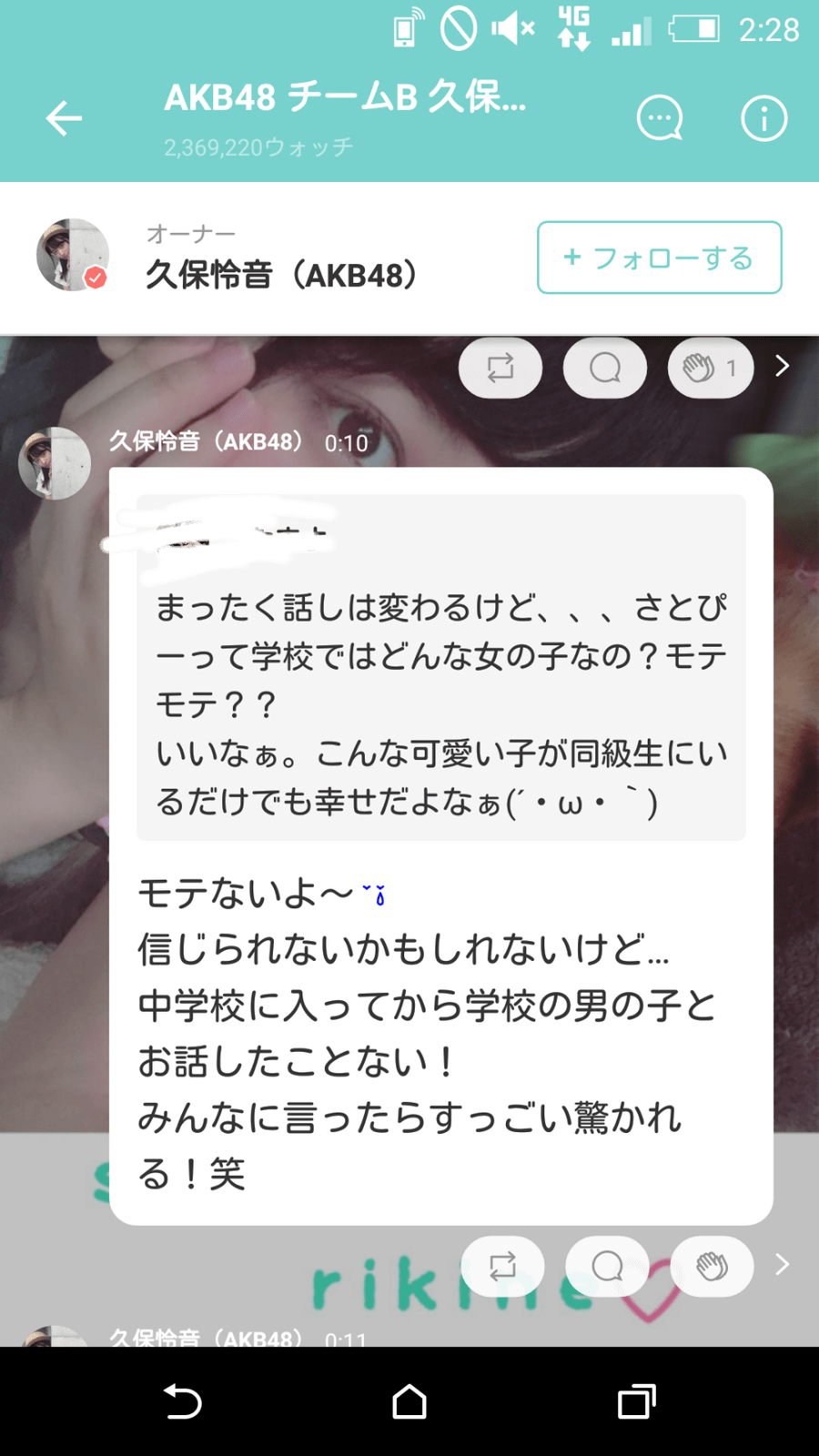 【速報】AKB48久保怜音「信じられないかもしれないけど…中学校に入ってから学校の男の子とお話したことない!」【さとぴー】 投稿日 2018年8月2日 11:04:15 (AKB関連) Tweet スポンサードリンク 続きを読む Source: AKB48タイムズ(AKB48まとめ) スポンサードリンク 続きを読む>> 最新情報 【朗報】AKB48のマレーシアイベント、大盛況で無事に終了!!! 【画像】この子アイドルで通用しますか?【HKT487期研究生 江浦優香13才】 【朗報】外ドラマ出演のAKB48山﨑空ちゃんの演技が上手いと話題に【あなたの恋人、強奪します。/そらら】 【朗報】近々新曲のMV撮影が行われる模様!【AKB48】 【朗報】19期研究生全員当たり!!!【AKB48劇場公演デビュー】 【朗報】ベルク×ニップン「AKB48 17期生 もちっとおいしいコラボキャンペーン」がスタート!!! 【速報】最新の久保怜音さんがキタ━━━━(゚∀゚)━━━━!!【元AKB48さとぴー】 【速報】STU48森下舞羽が卒業発表!!【まいはっち】 【AKB48】村山彩希さん、ついにインスタの個人アカウントを作る!!【ゆいリーInstagramデビュー】 【AKB48】クアラルンプール2日目、髙橋彩音ちゃんにぶっかけられて喜ぶ現地民をご覧下さい【マレーシア】 【悲報】地下アイドル現場怖い😱 女優業って正直ファンとしては辛い事ばかりで全然嬉しくないよね?【AKB48/SKE48/NMB48/HKT48/NGT48/STU48】 【朗報】元AKB48チームTP・邱品涵さん、福岡ソフトバンクホークスのチアガールに転身し大成功!!! 【AKB48】卒業記念生写真を出せるメンバーの基準ってどうなってんの? 【朗報】元AKB48奥原妃奈子さん、渋谷の大型ビジョンに現れる!【元チーム8ひーな】 昨日は岡田パッパの誕生日です【元AKB48岡田奈々】 【悲報】アイドルさん、ビラ配り中にまたしても酷い目に遭ってしまう【カリギュラのぶちあげイエロー担当ゆめぴりか】 【朗報】NGT48奈良未遥、ファースト写真集「こんな風に見られているのか?」7月1日発売決定!!! 【KLP48】クアラルンプール2日目に起こりそうなこと【AKB48】 今度こそ正真正銘のずっきーの谷間キタあああああ?【AKB48山内瑞葵】 【衝撃】松井珠理奈がアイドル復帰!マレーシア初の48姉妹グループ・KLP48プレイングマネージャーに就任決定!正式発表【元SKE48】 【AKB48】オリジナルステッカー販売終了のお知らせ【ピンポン玉チャレンジ】 【朗報】元馬嘉伶の真楪伶が1st写真集を発売決定!!【元AKB48・元まちゃりん・奇跡と出会った瞬間】 初めてAKB48劇場に入る私にアドバイス下さい!! スクエニ『トワツガイ』が僅か1年でサービス終了!大西桃香、渡辺みり愛、長谷川玲奈が実写化したのに【舞台化・元AKB48/元乃木坂46/元NGT48】 【悲報】=LOVE大谷映美里、体調不良のため本日の「個別お話し会」を欠席・・・【指原莉乃プロデュースアイドル・イコラブ・イコールラブ】 「ゆいずき」のダブルセンターというAKB48最強のカード【小栗有以・山内瑞葵】 【朗報】AKB48橋本陽菜、マレーシア移籍は断ったけど、旅行気分の数日間なら喜ぶ!!【はるぴょん】 【AKB48】メンバーが公演後に受け取ったファンレターをうpしてるのだが、どう思う? 【AKB48】正鋳真優「いつかAKBにチーム制を復活させたい」【まさるさん】 【悲報】TV朝日さん、Twitterの動画をタダで使わせてもらおうとした結果 秋元康のパーティーが羨ましすぎるンゴwwwwww
