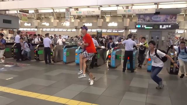 その後ユーチューバーは改札の中に入り列を仕切りだした。