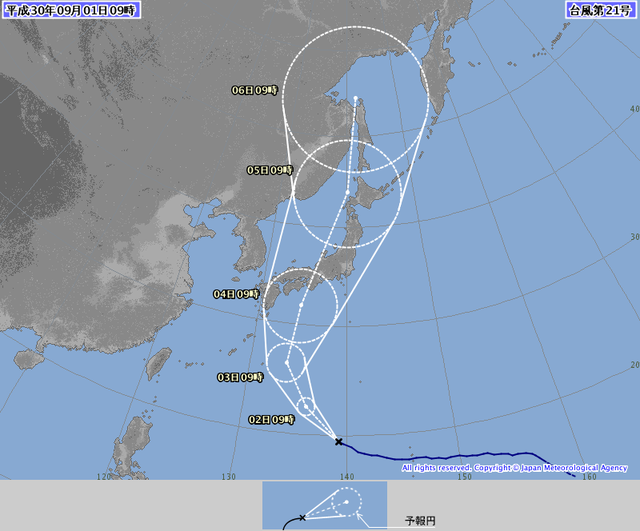 【気象】台風21号が『猛烈な勢力』に。今年最強の905hPa、風速80m/sまで発達か。5日(水)に日本に接近・上陸のおそれ