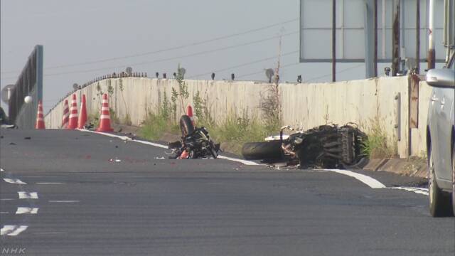 警察によりますと、バイクにはそれぞれ複数人が乗っていたと見られていますが、現場では人数分のヘルメットが見つかっていないということです。