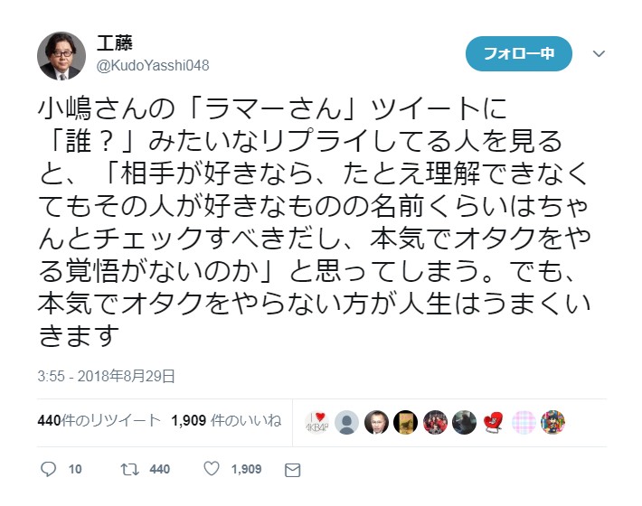 【元AKB48】小嶋陽菜がリツイート「相手が好きなら、たとえ理解できなくてもその人が好きなものの名前くらいはちゃんとチェックすべき」【こじはる】 投稿日 2018年9月2日 19:34:15 (AKB関連) Tweet スポンサードリンク 続きを読む Source: AKB48タイムズ(AKB48まとめ) スポンサードリンク 続きを読む>> 最新情報 【朗報】AKB48のマレーシアイベント、大盛況で無事に終了!!! 【画像】この子アイドルで通用しますか?【HKT487期研究生 江浦優香13才】 【朗報】外ドラマ出演のAKB48山﨑空ちゃんの演技が上手いと話題に【あなたの恋人、強奪します。/そらら】 【朗報】近々新曲のMV撮影が行われる模様!【AKB48】 【朗報】19期研究生全員当たり!!!【AKB48劇場公演デビュー】 【朗報】ベルク×ニップン「AKB48 17期生 もちっとおいしいコラボキャンペーン」がスタート!!! 【速報】最新の久保怜音さんがキタ━━━━(゚∀゚)━━━━!!【元AKB48さとぴー】 【速報】STU48森下舞羽が卒業発表!!【まいはっち】 【AKB48】村山彩希さん、ついにインスタの個人アカウントを作る!!【ゆいリーInstagramデビュー】 【AKB48】クアラルンプール2日目、髙橋彩音ちゃんにぶっかけられて喜ぶ現地民をご覧下さい【マレーシア】 【悲報】地下アイドル現場怖い😱 女優業って正直ファンとしては辛い事ばかりで全然嬉しくないよね?【AKB48/SKE48/NMB48/HKT48/NGT48/STU48】 【朗報】元AKB48チームTP・邱品涵さん、福岡ソフトバンクホークスのチアガールに転身し大成功!!! 【AKB48】卒業記念生写真を出せるメンバーの基準ってどうなってんの? 【朗報】元AKB48奥原妃奈子さん、渋谷の大型ビジョンに現れる!【元チーム8ひーな】 昨日は岡田パッパの誕生日です【元AKB48岡田奈々】 【悲報】アイドルさん、ビラ配り中にまたしても酷い目に遭ってしまう【カリギュラのぶちあげイエロー担当ゆめぴりか】 【朗報】NGT48奈良未遥、ファースト写真集「こんな風に見られているのか?」7月1日発売決定!!! 【KLP48】クアラルンプール2日目に起こりそうなこと【AKB48】 今度こそ正真正銘のずっきーの谷間キタあああああ?【AKB48山内瑞葵】 【衝撃】松井珠理奈がアイドル復帰!マレーシア初の48姉妹グループ・KLP48プレイングマネージャーに就任決定!正式発表【元SKE48】 【AKB48】オリジナルステッカー販売終了のお知らせ【ピンポン玉チャレンジ】 【朗報】元馬嘉伶の真楪伶が1st写真集を発売決定!!【元AKB48・元まちゃりん・奇跡と出会った瞬間】 初めてAKB48劇場に入る私にアドバイス下さい!! スクエニ『トワツガイ』が僅か1年でサービス終了!大西桃香、渡辺みり愛、長谷川玲奈が実写化したのに【舞台化・元AKB48/元乃木坂46/元NGT48】 【悲報】=LOVE大谷映美里、体調不良のため本日の「個別お話し会」を欠席・・・【指原莉乃プロデュースアイドル・イコラブ・イコールラブ】 「ゆいずき」のダブルセンターというAKB48最強のカード【小栗有以・山内瑞葵】 【朗報】AKB48橋本陽菜、マレーシア移籍は断ったけど、旅行気分の数日間なら喜ぶ!!【はるぴょん】 【AKB48】メンバーが公演後に受け取ったファンレターをうpしてるのだが、どう思う? 【AKB48】正鋳真優「いつかAKBにチーム制を復活させたい」【まさるさん】 飼ってるカニの水温が30度くらいに上がってたから氷投入したらwwwww 米津玄師の「Lemon」がソフトバンク新CMに採用