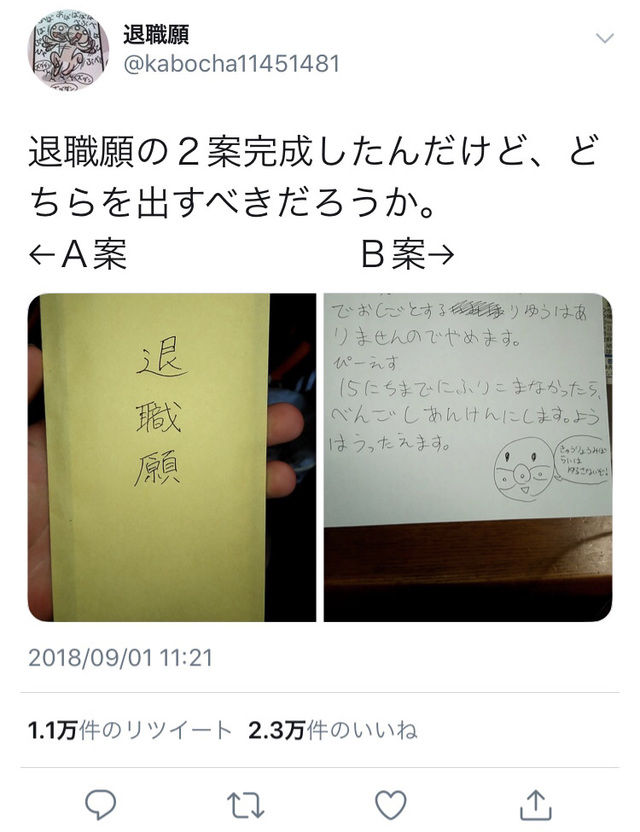 【画像あり】Twitterでセンス抜群な退職願の出し方が1万リツイート超えで話題に