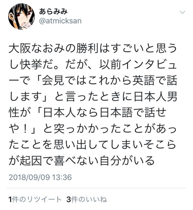 大坂なおみに対する日本人の素直な反応「日本人じゃない」「日本語話せ」「喜べない」