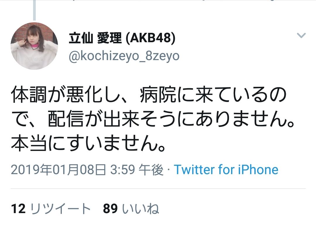 【悲報】歌唱力No.1決定戦大本命のAKB48立仙愛理さん、体調悪化で病院へ・・・【チーム8】 投稿日 2019年1月8日 22:46:15 (AKB関連) Tweet スポンサードリンク 続きを読む Source: AKB48タイムズ(AKB48まとめ) スポンサードリンク 続きを読む>> 最新情報 【朗報】AKB48のマレーシアイベント、大盛況で無事に終了!!! 【画像】この子アイドルで通用しますか?【HKT487期研究生 江浦優香13才】 【朗報】外ドラマ出演のAKB48山﨑空ちゃんの演技が上手いと話題に【あなたの恋人、強奪します。/そらら】 【朗報】近々新曲のMV撮影が行われる模様!【AKB48】 【朗報】19期研究生全員当たり!!!【AKB48劇場公演デビュー】 【朗報】ベルク×ニップン「AKB48 17期生 もちっとおいしいコラボキャンペーン」がスタート!!! 【速報】最新の久保怜音さんがキタ━━━━(゚∀゚)━━━━!!【元AKB48さとぴー】 【速報】STU48森下舞羽が卒業発表!!【まいはっち】 【AKB48】村山彩希さん、ついにインスタの個人アカウントを作る!!【ゆいリーInstagramデビュー】 【AKB48】クアラルンプール2日目、髙橋彩音ちゃんにぶっかけられて喜ぶ現地民をご覧下さい【マレーシア】 【悲報】地下アイドル現場怖い😱 女優業って正直ファンとしては辛い事ばかりで全然嬉しくないよね?【AKB48/SKE48/NMB48/HKT48/NGT48/STU48】 【朗報】元AKB48チームTP・邱品涵さん、福岡ソフトバンクホークスのチアガールに転身し大成功!!! 【AKB48】卒業記念生写真を出せるメンバーの基準ってどうなってんの? 【朗報】元AKB48奥原妃奈子さん、渋谷の大型ビジョンに現れる!【元チーム8ひーな】 昨日は岡田パッパの誕生日です【元AKB48岡田奈々】 【悲報】アイドルさん、ビラ配り中にまたしても酷い目に遭ってしまう【カリギュラのぶちあげイエロー担当ゆめぴりか】 【朗報】NGT48奈良未遥、ファースト写真集「こんな風に見られているのか?」7月1日発売決定!!! 【KLP48】クアラルンプール2日目に起こりそうなこと【AKB48】 今度こそ正真正銘のずっきーの谷間キタあああああ?【AKB48山内瑞葵】 【衝撃】松井珠理奈がアイドル復帰!マレーシア初の48姉妹グループ・KLP48プレイングマネージャーに就任決定!正式発表【元SKE48】 【AKB48】オリジナルステッカー販売終了のお知らせ【ピンポン玉チャレンジ】 【朗報】元馬嘉伶の真楪伶が1st写真集を発売決定!!【元AKB48・元まちゃりん・奇跡と出会った瞬間】 初めてAKB48劇場に入る私にアドバイス下さい!! スクエニ『トワツガイ』が僅か1年でサービス終了!大西桃香、渡辺みり愛、長谷川玲奈が実写化したのに【舞台化・元AKB48/元乃木坂46/元NGT48】 【悲報】=LOVE大谷映美里、体調不良のため本日の「個別お話し会」を欠席・・・【指原莉乃プロデュースアイドル・イコラブ・イコールラブ】 「ゆいずき」のダブルセンターというAKB48最強のカード【小栗有以・山内瑞葵】 【朗報】AKB48橋本陽菜、マレーシア移籍は断ったけど、旅行気分の数日間なら喜ぶ!!【はるぴょん】 【AKB48】メンバーが公演後に受け取ったファンレターをうpしてるのだが、どう思う? 【AKB48】正鋳真優「いつかAKBにチーム制を復活させたい」【まさるさん】 【NGT48】中井りか「いままでいなかったから非常織とか、じゃあ裸で歩くのが常識だったらそうするの?」【りか姫】 【AKB48】岡部麟のソロコンサート チケット一般特別発売・・・【チーム8りんりん】
