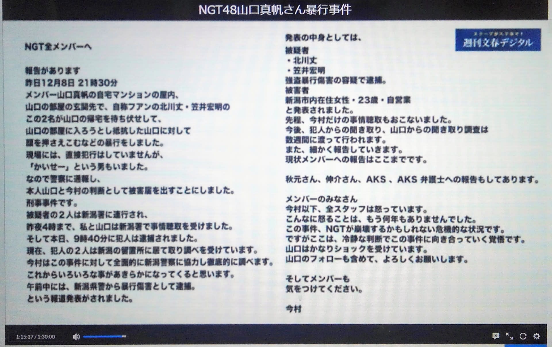 【速報】山口真帆事件直後のNGT48今村支配人からメンバーへのメールが公開!!! 投稿日 2019年1月12日 23:29:04 (AKB関連) Tweet スポンサードリンク 続きを読む Source: AKB48タイムズ(AKB48まとめ) スポンサードリンク 続きを読む>> 最新情報 【朗報】AKB48のマレーシアイベント、大盛況で無事に終了!!! 【画像】この子アイドルで通用しますか?【HKT487期研究生 江浦優香13才】 【朗報】外ドラマ出演のAKB48山﨑空ちゃんの演技が上手いと話題に【あなたの恋人、強奪します。/そらら】 【朗報】近々新曲のMV撮影が行われる模様!【AKB48】 【朗報】19期研究生全員当たり!!!【AKB48劇場公演デビュー】 【朗報】ベルク×ニップン「AKB48 17期生 もちっとおいしいコラボキャンペーン」がスタート!!! 【速報】最新の久保怜音さんがキタ━━━━(゚∀゚)━━━━!!【元AKB48さとぴー】 【速報】STU48森下舞羽が卒業発表!!【まいはっち】 【AKB48】村山彩希さん、ついにインスタの個人アカウントを作る!!【ゆいリーInstagramデビュー】 【AKB48】クアラルンプール2日目、髙橋彩音ちゃんにぶっかけられて喜ぶ現地民をご覧下さい【マレーシア】 【悲報】地下アイドル現場怖い😱 女優業って正直ファンとしては辛い事ばかりで全然嬉しくないよね?【AKB48/SKE48/NMB48/HKT48/NGT48/STU48】 【朗報】元AKB48チームTP・邱品涵さん、福岡ソフトバンクホークスのチアガールに転身し大成功!!! 【AKB48】卒業記念生写真を出せるメンバーの基準ってどうなってんの? 【朗報】元AKB48奥原妃奈子さん、渋谷の大型ビジョンに現れる!【元チーム8ひーな】 昨日は岡田パッパの誕生日です【元AKB48岡田奈々】 【悲報】アイドルさん、ビラ配り中にまたしても酷い目に遭ってしまう【カリギュラのぶちあげイエロー担当ゆめぴりか】 【朗報】NGT48奈良未遥、ファースト写真集「こんな風に見られているのか?」7月1日発売決定!!! 【KLP48】クアラルンプール2日目に起こりそうなこと【AKB48】 今度こそ正真正銘のずっきーの谷間キタあああああ?【AKB48山内瑞葵】 【衝撃】松井珠理奈がアイドル復帰!マレーシア初の48姉妹グループ・KLP48プレイングマネージャーに就任決定!正式発表【元SKE48】 【AKB48】オリジナルステッカー販売終了のお知らせ【ピンポン玉チャレンジ】 【朗報】元馬嘉伶の真楪伶が1st写真集を発売決定!!【元AKB48・元まちゃりん・奇跡と出会った瞬間】 初めてAKB48劇場に入る私にアドバイス下さい!! スクエニ『トワツガイ』が僅か1年でサービス終了!大西桃香、渡辺みり愛、長谷川玲奈が実写化したのに【舞台化・元AKB48/元乃木坂46/元NGT48】 【悲報】=LOVE大谷映美里、体調不良のため本日の「個別お話し会」を欠席・・・【指原莉乃プロデュースアイドル・イコラブ・イコールラブ】 「ゆいずき」のダブルセンターというAKB48最強のカード【小栗有以・山内瑞葵】 【朗報】AKB48橋本陽菜、マレーシア移籍は断ったけど、旅行気分の数日間なら喜ぶ!!【はるぴょん】 【AKB48】メンバーが公演後に受け取ったファンレターをうpしてるのだが、どう思う? 【AKB48】正鋳真優「いつかAKBにチーム制を復活させたい」【まさるさん】 【速報】AKB48小嶋真子卒業発表!!!【こじまこ】 桑田佳祐&Mr.Children「奇跡の地球」について
