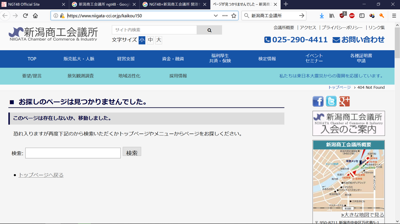 【悲報】昨日まであった新潟商工会議所のNGT48のページが急に消える・・・ 投稿日 2019年1月15日 18:06:28 (AKB関連) Tweet スポンサードリンク 続きを読む Source: AKB48タイムズ(AKB48まとめ) スポンサードリンク 続きを読む>> 最新情報 【朗報】AKB48のマレーシアイベント、大盛況で無事に終了!!! 【画像】この子アイドルで通用しますか?【HKT487期研究生 江浦優香13才】 【朗報】外ドラマ出演のAKB48山﨑空ちゃんの演技が上手いと話題に【あなたの恋人、強奪します。/そらら】 【朗報】近々新曲のMV撮影が行われる模様!【AKB48】 【朗報】19期研究生全員当たり!!!【AKB48劇場公演デビュー】 【朗報】ベルク×ニップン「AKB48 17期生 もちっとおいしいコラボキャンペーン」がスタート!!! 【速報】最新の久保怜音さんがキタ━━━━(゚∀゚)━━━━!!【元AKB48さとぴー】 【速報】STU48森下舞羽が卒業発表!!【まいはっち】 【AKB48】村山彩希さん、ついにインスタの個人アカウントを作る!!【ゆいリーInstagramデビュー】 【AKB48】クアラルンプール2日目、髙橋彩音ちゃんにぶっかけられて喜ぶ現地民をご覧下さい【マレーシア】 【悲報】地下アイドル現場怖い😱 女優業って正直ファンとしては辛い事ばかりで全然嬉しくないよね?【AKB48/SKE48/NMB48/HKT48/NGT48/STU48】 【朗報】元AKB48チームTP・邱品涵さん、福岡ソフトバンクホークスのチアガールに転身し大成功!!! 【AKB48】卒業記念生写真を出せるメンバーの基準ってどうなってんの? 【朗報】元AKB48奥原妃奈子さん、渋谷の大型ビジョンに現れる!【元チーム8ひーな】 昨日は岡田パッパの誕生日です【元AKB48岡田奈々】 【悲報】アイドルさん、ビラ配り中にまたしても酷い目に遭ってしまう【カリギュラのぶちあげイエロー担当ゆめぴりか】 【朗報】NGT48奈良未遥、ファースト写真集「こんな風に見られているのか?」7月1日発売決定!!! 【KLP48】クアラルンプール2日目に起こりそうなこと【AKB48】 今度こそ正真正銘のずっきーの谷間キタあああああ?【AKB48山内瑞葵】 【衝撃】松井珠理奈がアイドル復帰!マレーシア初の48姉妹グループ・KLP48プレイングマネージャーに就任決定!正式発表【元SKE48】 【AKB48】オリジナルステッカー販売終了のお知らせ【ピンポン玉チャレンジ】 【朗報】元馬嘉伶の真楪伶が1st写真集を発売決定!!【元AKB48・元まちゃりん・奇跡と出会った瞬間】 初めてAKB48劇場に入る私にアドバイス下さい!! スクエニ『トワツガイ』が僅か1年でサービス終了!大西桃香、渡辺みり愛、長谷川玲奈が実写化したのに【舞台化・元AKB48/元乃木坂46/元NGT48】 【悲報】=LOVE大谷映美里、体調不良のため本日の「個別お話し会」を欠席・・・【指原莉乃プロデュースアイドル・イコラブ・イコールラブ】 「ゆいずき」のダブルセンターというAKB48最強のカード【小栗有以・山内瑞葵】 【朗報】AKB48橋本陽菜、マレーシア移籍は断ったけど、旅行気分の数日間なら喜ぶ!!【はるぴょん】 【AKB48】メンバーが公演後に受け取ったファンレターをうpしてるのだが、どう思う? 【AKB48】正鋳真優「いつかAKBにチーム制を復活させたい」【まさるさん】 見取り図が上方漫才協会大賞、中田カウス会長が評価 V6・NEWS・キンプリら総勢48人のジャニーズが選ぶ「夜空ノムコウ」「シンデレラ・クリスマス」など冬ソング