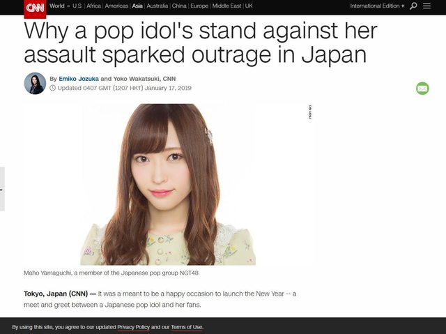 CNNの記事ではまず、「12月に山口真帆がファンから暴行を受けた。彼女はその処理を運営がしてくれるのを1カ月待ったが、