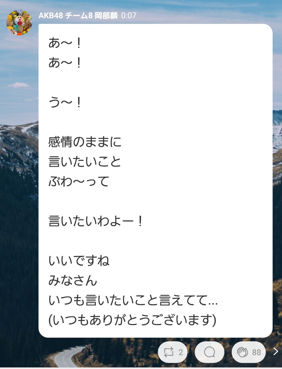 【悲報】岡部麟、ついに壊れる・・・(AKB48チーム8)【ポイズン】 投稿日 2019年4月21日 13:25:57 (AKB関連) Tweet スポンサードリンク 続きを読む Source: AKB48タイムズ(AKB48まとめ) スポンサードリンク 続きを読む>> 最新情報 【朗報】AKB48のマレーシアイベント、大盛況で無事に終了!!! 【画像】この子アイドルで通用しますか?【HKT487期研究生 江浦優香13才】 【朗報】外ドラマ出演のAKB48山﨑空ちゃんの演技が上手いと話題に【あなたの恋人、強奪します。/そらら】 【朗報】近々新曲のMV撮影が行われる模様!【AKB48】 【朗報】19期研究生全員当たり!!!【AKB48劇場公演デビュー】 【朗報】ベルク×ニップン「AKB48 17期生 もちっとおいしいコラボキャンペーン」がスタート!!! 【速報】最新の久保怜音さんがキタ━━━━(゚∀゚)━━━━!!【元AKB48さとぴー】 【速報】STU48森下舞羽が卒業発表!!【まいはっち】 【AKB48】村山彩希さん、ついにインスタの個人アカウントを作る!!【ゆいリーInstagramデビュー】 【AKB48】クアラルンプール2日目、髙橋彩音ちゃんにぶっかけられて喜ぶ現地民をご覧下さい【マレーシア】 【悲報】地下アイドル現場怖い😱 女優業って正直ファンとしては辛い事ばかりで全然嬉しくないよね?【AKB48/SKE48/NMB48/HKT48/NGT48/STU48】 【朗報】元AKB48チームTP・邱品涵さん、福岡ソフトバンクホークスのチアガールに転身し大成功!!! 【AKB48】卒業記念生写真を出せるメンバーの基準ってどうなってんの? 【朗報】元AKB48奥原妃奈子さん、渋谷の大型ビジョンに現れる!【元チーム8ひーな】 昨日は岡田パッパの誕生日です【元AKB48岡田奈々】 【悲報】アイドルさん、ビラ配り中にまたしても酷い目に遭ってしまう【カリギュラのぶちあげイエロー担当ゆめぴりか】 【朗報】NGT48奈良未遥、ファースト写真集「こんな風に見られているのか?」7月1日発売決定!!! 【KLP48】クアラルンプール2日目に起こりそうなこと【AKB48】 今度こそ正真正銘のずっきーの谷間キタあああああ?【AKB48山内瑞葵】 【衝撃】松井珠理奈がアイドル復帰!マレーシア初の48姉妹グループ・KLP48プレイングマネージャーに就任決定!正式発表【元SKE48】 【AKB48】オリジナルステッカー販売終了のお知らせ【ピンポン玉チャレンジ】 【朗報】元馬嘉伶の真楪伶が1st写真集を発売決定!!【元AKB48・元まちゃりん・奇跡と出会った瞬間】 初めてAKB48劇場に入る私にアドバイス下さい!! スクエニ『トワツガイ』が僅か1年でサービス終了!大西桃香、渡辺みり愛、長谷川玲奈が実写化したのに【舞台化・元AKB48/元乃木坂46/元NGT48】 【悲報】=LOVE大谷映美里、体調不良のため本日の「個別お話し会」を欠席・・・【指原莉乃プロデュースアイドル・イコラブ・イコールラブ】 「ゆいずき」のダブルセンターというAKB48最強のカード【小栗有以・山内瑞葵】 【朗報】AKB48橋本陽菜、マレーシア移籍は断ったけど、旅行気分の数日間なら喜ぶ!!【はるぴょん】 【AKB48】メンバーが公演後に受け取ったファンレターをうpしてるのだが、どう思う? 【AKB48】正鋳真優「いつかAKBにチーム制を復活させたい」【まさるさん】 【速報】一押し 急落銘柄 荻野由佳氏インスタフォロワー数 17万割り込む【NGT48おぎゆか】 【速報】NGT48千秋楽公演で早川麻依子支配人が謝罪「大きく信頼を裏切ることに…」【NGT暴行事件】