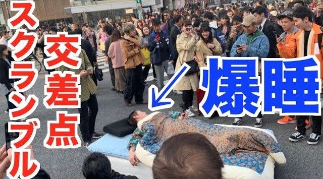 ■「スクランブル交差点にガチベッドで寝てみた」