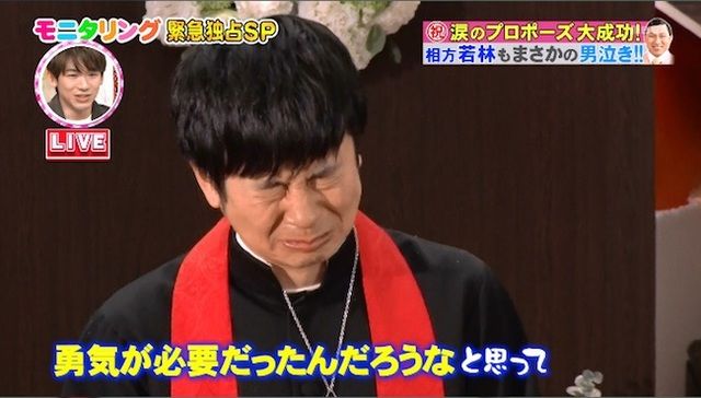 こんな罵声を浴びているのは、4月18日放送の「ニンゲン観察バラエティ モニタリング」(TBS系)で、11年間付き合ったクミさんに公開プロポーズをしたオードリーの春日俊彰。