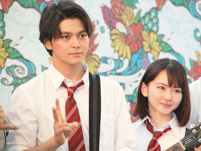 この日は佐野勇斗(21)、山田杏奈(18)らと共に、劇中と同じ5人組バンドを結成。MONGOL800の「あなたに」「DON’T WORRY BE HAPPY」などでギター演奏を披露した。
