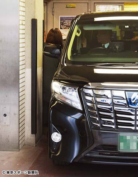 迎えの車が関係者出入り口付近に横付けされた。姿を現した文枝はグレーのハンチング帽、マスク姿。関係者に厳重ガードされながら足早に車に