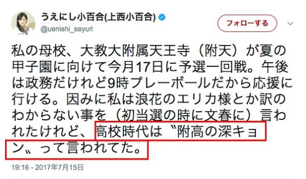 上西「高校時代は深キョンって言われてた」