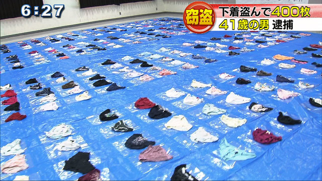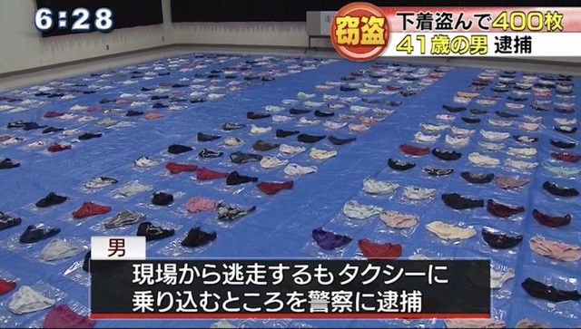 【悲報】警察が下着ドロが盗んだパンティを400枚押収し並べるもやる気がないと話題に