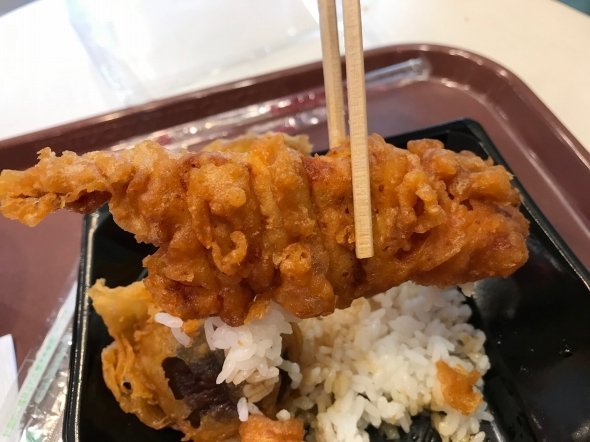 全体の味としては天丼に近いが、甘辛いタレの味付けなどはビミョウに異なる。割りと量が少な目なタレが
