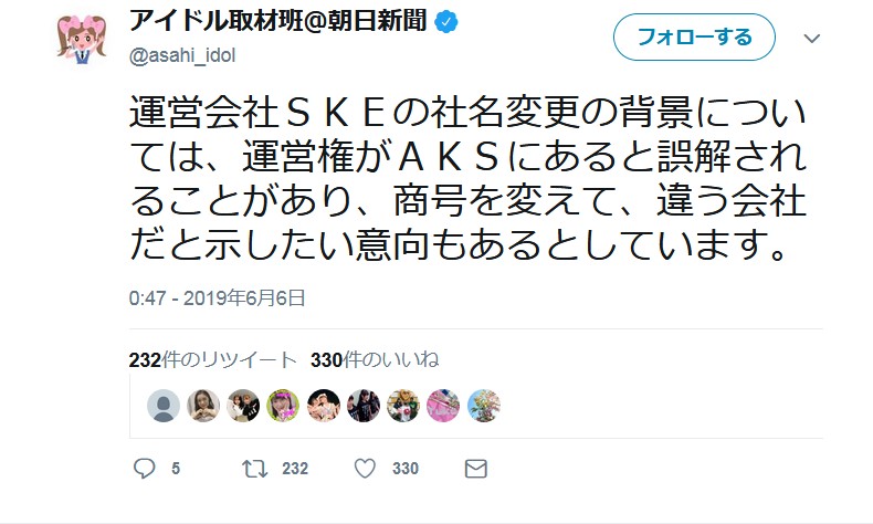 株式会社SKE、7月1日から「株式会社ゼスト」に社名変更 朝日新聞「運営権がAKSにあると誤解されるのを防ぐため」 投稿日 2019年6月6日 23:03:20 (AKB関連) Tweet スポンサードリンク 続きを読む Source: AKB48タイムズ(AKB48まとめ) スポンサードリンク 続きを読む>> 最新情報 【朗報】AKB48のマレーシアイベント、大盛況で無事に終了!!! 【画像】この子アイドルで通用しますか?【HKT487期研究生 江浦優香13才】 【朗報】外ドラマ出演のAKB48山﨑空ちゃんの演技が上手いと話題に【あなたの恋人、強奪します。/そらら】 【朗報】近々新曲のMV撮影が行われる模様!【AKB48】 【朗報】19期研究生全員当たり!!!【AKB48劇場公演デビュー】 【朗報】ベルク×ニップン「AKB48 17期生 もちっとおいしいコラボキャンペーン」がスタート!!! 【速報】最新の久保怜音さんがキタ━━━━(゚∀゚)━━━━!!【元AKB48さとぴー】 【速報】STU48森下舞羽が卒業発表!!【まいはっち】 【AKB48】村山彩希さん、ついにインスタの個人アカウントを作る!!【ゆいリーInstagramデビュー】 【AKB48】クアラルンプール2日目、髙橋彩音ちゃんにぶっかけられて喜ぶ現地民をご覧下さい【マレーシア】 【悲報】地下アイドル現場怖い😱 女優業って正直ファンとしては辛い事ばかりで全然嬉しくないよね?【AKB48/SKE48/NMB48/HKT48/NGT48/STU48】 【朗報】元AKB48チームTP・邱品涵さん、福岡ソフトバンクホークスのチアガールに転身し大成功!!! 【AKB48】卒業記念生写真を出せるメンバーの基準ってどうなってんの? 【朗報】元AKB48奥原妃奈子さん、渋谷の大型ビジョンに現れる!【元チーム8ひーな】 昨日は岡田パッパの誕生日です【元AKB48岡田奈々】 【悲報】アイドルさん、ビラ配り中にまたしても酷い目に遭ってしまう【カリギュラのぶちあげイエロー担当ゆめぴりか】 【朗報】NGT48奈良未遥、ファースト写真集「こんな風に見られているのか?」7月1日発売決定!!! 【KLP48】クアラルンプール2日目に起こりそうなこと【AKB48】 今度こそ正真正銘のずっきーの谷間キタあああああ?【AKB48山内瑞葵】 【衝撃】松井珠理奈がアイドル復帰!マレーシア初の48姉妹グループ・KLP48プレイングマネージャーに就任決定!正式発表【元SKE48】 【AKB48】オリジナルステッカー販売終了のお知らせ【ピンポン玉チャレンジ】 【朗報】元馬嘉伶の真楪伶が1st写真集を発売決定!!【元AKB48・元まちゃりん・奇跡と出会った瞬間】 初めてAKB48劇場に入る私にアドバイス下さい!! スクエニ『トワツガイ』が僅か1年でサービス終了!大西桃香、渡辺みり愛、長谷川玲奈が実写化したのに【舞台化・元AKB48/元乃木坂46/元NGT48】 【悲報】=LOVE大谷映美里、体調不良のため本日の「個別お話し会」を欠席・・・【指原莉乃プロデュースアイドル・イコラブ・イコールラブ】 「ゆいずき」のダブルセンターというAKB48最強のカード【小栗有以・山内瑞葵】 【朗報】AKB48橋本陽菜、マレーシア移籍は断ったけど、旅行気分の数日間なら喜ぶ!!【はるぴょん】 【AKB48】メンバーが公演後に受け取ったファンレターをうpしてるのだが、どう思う? 【AKB48】正鋳真優「いつかAKBにチーム制を復活させたい」【まさるさん】 AKBヲタが考えるジャニーズで一番カッコいいと思うメンバーwww 【速報】NGT48、劇場公演再開か? 1期生がレッスン再開!!!