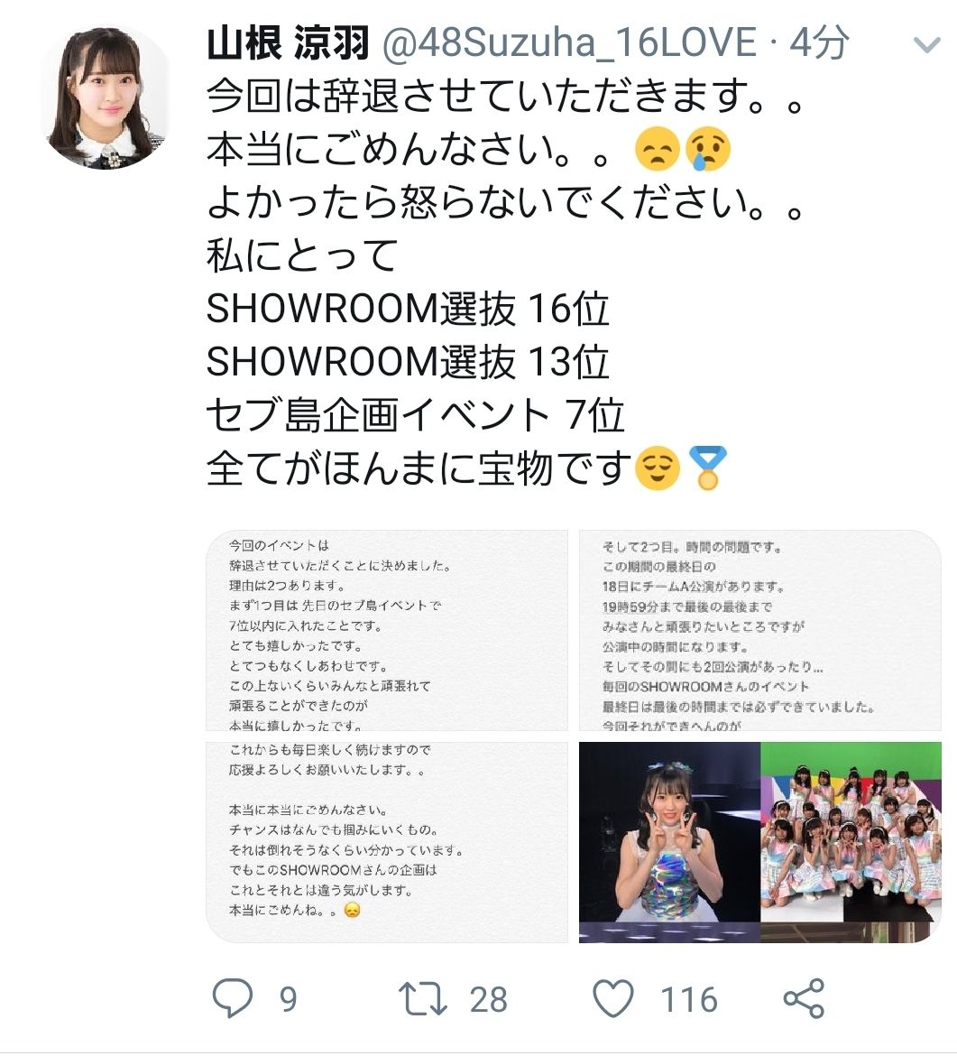 【AKB48】毎日アイドル山根涼羽さんがSHOWROOMイベント辞退。その理由が泣ける… 投稿日 2019年6月12日 16:59:34 (AKB関連) Tweet スポンサードリンク 続きを読む Source: AKB48タイムズ(AKB48まとめ) スポンサードリンク 続きを読む>> 最新情報 【朗報】AKB48のマレーシアイベント、大盛況で無事に終了!!! 【画像】この子アイドルで通用しますか?【HKT487期研究生 江浦優香13才】 【朗報】外ドラマ出演のAKB48山﨑空ちゃんの演技が上手いと話題に【あなたの恋人、強奪します。/そらら】 【朗報】近々新曲のMV撮影が行われる模様!【AKB48】 【朗報】19期研究生全員当たり!!!【AKB48劇場公演デビュー】 【朗報】ベルク×ニップン「AKB48 17期生 もちっとおいしいコラボキャンペーン」がスタート!!! 【速報】最新の久保怜音さんがキタ━━━━(゚∀゚)━━━━!!【元AKB48さとぴー】 【速報】STU48森下舞羽が卒業発表!!【まいはっち】 【AKB48】村山彩希さん、ついにインスタの個人アカウントを作る!!【ゆいリーInstagramデビュー】 【AKB48】クアラルンプール2日目、髙橋彩音ちゃんにぶっかけられて喜ぶ現地民をご覧下さい【マレーシア】 【悲報】地下アイドル現場怖い😱 女優業って正直ファンとしては辛い事ばかりで全然嬉しくないよね?【AKB48/SKE48/NMB48/HKT48/NGT48/STU48】 【朗報】元AKB48チームTP・邱品涵さん、福岡ソフトバンクホークスのチアガールに転身し大成功!!! 【AKB48】卒業記念生写真を出せるメンバーの基準ってどうなってんの? 【朗報】元AKB48奥原妃奈子さん、渋谷の大型ビジョンに現れる!【元チーム8ひーな】 昨日は岡田パッパの誕生日です【元AKB48岡田奈々】 【悲報】アイドルさん、ビラ配り中にまたしても酷い目に遭ってしまう【カリギュラのぶちあげイエロー担当ゆめぴりか】 【朗報】NGT48奈良未遥、ファースト写真集「こんな風に見られているのか?」7月1日発売決定!!! 【KLP48】クアラルンプール2日目に起こりそうなこと【AKB48】 今度こそ正真正銘のずっきーの谷間キタあああああ?【AKB48山内瑞葵】 【衝撃】松井珠理奈がアイドル復帰!マレーシア初の48姉妹グループ・KLP48プレイングマネージャーに就任決定!正式発表【元SKE48】 【AKB48】オリジナルステッカー販売終了のお知らせ【ピンポン玉チャレンジ】 【朗報】元馬嘉伶の真楪伶が1st写真集を発売決定!!【元AKB48・元まちゃりん・奇跡と出会った瞬間】 初めてAKB48劇場に入る私にアドバイス下さい!! スクエニ『トワツガイ』が僅か1年でサービス終了!大西桃香、渡辺みり愛、長谷川玲奈が実写化したのに【舞台化・元AKB48/元乃木坂46/元NGT48】 【悲報】=LOVE大谷映美里、体調不良のため本日の「個別お話し会」を欠席・・・【指原莉乃プロデュースアイドル・イコラブ・イコールラブ】 「ゆいずき」のダブルセンターというAKB48最強のカード【小栗有以・山内瑞葵】 【朗報】AKB48橋本陽菜、マレーシア移籍は断ったけど、旅行気分の数日間なら喜ぶ!!【はるぴょん】 【AKB48】メンバーが公演後に受け取ったファンレターをうpしてるのだが、どう思う? 【AKB48】正鋳真優「いつかAKBにチーム制を復活させたい」【まさるさん】 中居正広、9年連続『音楽の日』総合司会! AKB、“恋愛禁止ルール”は契約書に記載なし?
