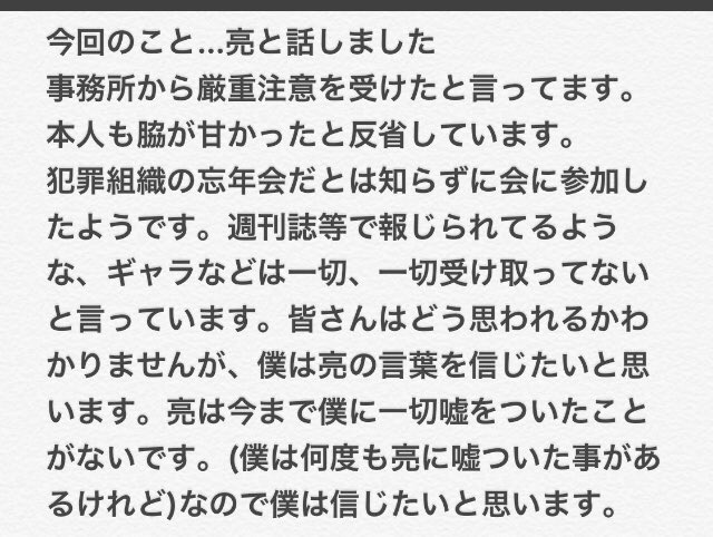 【芸能】ロンブー亮「虚偽の説明をしてしまった事を謝罪させて頂きます」