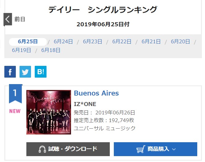 【速報】IZ*ONE 日本2ndシングル「Buenos Aires」初日売上192,749枚!!! 投稿日 2019年6月26日 20:00:47 (AKB関連) Tweet スポンサードリンク 続きを読む Source: AKB48タイムズ(AKB48まとめ) スポンサードリンク 続きを読む>> 最新情報 【朗報】AKB48のマレーシアイベント、大盛況で無事に終了!!! 【画像】この子アイドルで通用しますか?【HKT487期研究生 江浦優香13才】 【朗報】外ドラマ出演のAKB48山﨑空ちゃんの演技が上手いと話題に【あなたの恋人、強奪します。/そらら】 【朗報】近々新曲のMV撮影が行われる模様!【AKB48】 【朗報】19期研究生全員当たり!!!【AKB48劇場公演デビュー】 【朗報】ベルク×ニップン「AKB48 17期生 もちっとおいしいコラボキャンペーン」がスタート!!! 【速報】最新の久保怜音さんがキタ━━━━(゚∀゚)━━━━!!【元AKB48さとぴー】 【速報】STU48森下舞羽が卒業発表!!【まいはっち】 【AKB48】村山彩希さん、ついにインスタの個人アカウントを作る!!【ゆいリーInstagramデビュー】 【AKB48】クアラルンプール2日目、髙橋彩音ちゃんにぶっかけられて喜ぶ現地民をご覧下さい【マレーシア】 【悲報】地下アイドル現場怖い😱 女優業って正直ファンとしては辛い事ばかりで全然嬉しくないよね?【AKB48/SKE48/NMB48/HKT48/NGT48/STU48】 【朗報】元AKB48チームTP・邱品涵さん、福岡ソフトバンクホークスのチアガールに転身し大成功!!! 【AKB48】卒業記念生写真を出せるメンバーの基準ってどうなってんの? 【朗報】元AKB48奥原妃奈子さん、渋谷の大型ビジョンに現れる!【元チーム8ひーな】 昨日は岡田パッパの誕生日です【元AKB48岡田奈々】 【悲報】アイドルさん、ビラ配り中にまたしても酷い目に遭ってしまう【カリギュラのぶちあげイエロー担当ゆめぴりか】 【朗報】NGT48奈良未遥、ファースト写真集「こんな風に見られているのか?」7月1日発売決定!!! 【KLP48】クアラルンプール2日目に起こりそうなこと【AKB48】 今度こそ正真正銘のずっきーの谷間キタあああああ?【AKB48山内瑞葵】 【衝撃】松井珠理奈がアイドル復帰!マレーシア初の48姉妹グループ・KLP48プレイングマネージャーに就任決定!正式発表【元SKE48】 【AKB48】オリジナルステッカー販売終了のお知らせ【ピンポン玉チャレンジ】 【朗報】元馬嘉伶の真楪伶が1st写真集を発売決定!!【元AKB48・元まちゃりん・奇跡と出会った瞬間】 初めてAKB48劇場に入る私にアドバイス下さい!! スクエニ『トワツガイ』が僅か1年でサービス終了!大西桃香、渡辺みり愛、長谷川玲奈が実写化したのに【舞台化・元AKB48/元乃木坂46/元NGT48】 【悲報】=LOVE大谷映美里、体調不良のため本日の「個別お話し会」を欠席・・・【指原莉乃プロデュースアイドル・イコラブ・イコールラブ】 「ゆいずき」のダブルセンターというAKB48最強のカード【小栗有以・山内瑞葵】 【朗報】AKB48橋本陽菜、マレーシア移籍は断ったけど、旅行気分の数日間なら喜ぶ!!【はるぴょん】 【AKB48】メンバーが公演後に受け取ったファンレターをうpしてるのだが、どう思う? 【AKB48】正鋳真優「いつかAKBにチーム制を復活させたい」【まさるさん】 ギター上手い人「速い曲より遅い曲の方が難しい」 今のLUNA SEA以外に何の集まりか不明のロックバンドは無い説