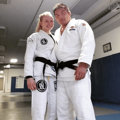 交際中の柔術世界女王クリスティン・ミケルソンさんと石井慧(三尾圭撮影)