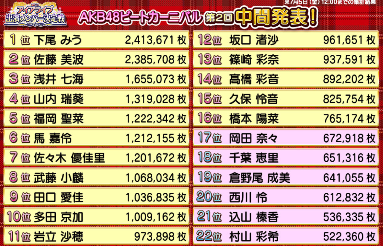 【速報】AKB48ビートカーニバル「アイアライブ出演メンバー決定戦」第2回中間発表キター 1位は下尾みう 投稿日 2019年7月5日 19:20:57 (AKB関連) Tweet スポンサードリンク 続きを読む Source: AKB48タイムズ(AKB48まとめ) スポンサードリンク 続きを読む>> 最新情報 【朗報】AKB48のマレーシアイベント、大盛況で無事に終了!!! 【画像】この子アイドルで通用しますか?【HKT487期研究生 江浦優香13才】 【朗報】外ドラマ出演のAKB48山﨑空ちゃんの演技が上手いと話題に【あなたの恋人、強奪します。/そらら】 【朗報】近々新曲のMV撮影が行われる模様!【AKB48】 【朗報】19期研究生全員当たり!!!【AKB48劇場公演デビュー】 【朗報】ベルク×ニップン「AKB48 17期生 もちっとおいしいコラボキャンペーン」がスタート!!! 【速報】最新の久保怜音さんがキタ━━━━(゚∀゚)━━━━!!【元AKB48さとぴー】 【速報】STU48森下舞羽が卒業発表!!【まいはっち】 【AKB48】村山彩希さん、ついにインスタの個人アカウントを作る!!【ゆいリーInstagramデビュー】 【AKB48】クアラルンプール2日目、髙橋彩音ちゃんにぶっかけられて喜ぶ現地民をご覧下さい【マレーシア】 【悲報】地下アイドル現場怖い😱 女優業って正直ファンとしては辛い事ばかりで全然嬉しくないよね?【AKB48/SKE48/NMB48/HKT48/NGT48/STU48】 【朗報】元AKB48チームTP・邱品涵さん、福岡ソフトバンクホークスのチアガールに転身し大成功!!! 【AKB48】卒業記念生写真を出せるメンバーの基準ってどうなってんの? 【朗報】元AKB48奥原妃奈子さん、渋谷の大型ビジョンに現れる!【元チーム8ひーな】 昨日は岡田パッパの誕生日です【元AKB48岡田奈々】 【悲報】アイドルさん、ビラ配り中にまたしても酷い目に遭ってしまう【カリギュラのぶちあげイエロー担当ゆめぴりか】 【朗報】NGT48奈良未遥、ファースト写真集「こんな風に見られているのか?」7月1日発売決定!!! 【KLP48】クアラルンプール2日目に起こりそうなこと【AKB48】 今度こそ正真正銘のずっきーの谷間キタあああああ?【AKB48山内瑞葵】 【衝撃】松井珠理奈がアイドル復帰!マレーシア初の48姉妹グループ・KLP48プレイングマネージャーに就任決定!正式発表【元SKE48】 【AKB48】オリジナルステッカー販売終了のお知らせ【ピンポン玉チャレンジ】 【朗報】元馬嘉伶の真楪伶が1st写真集を発売決定!!【元AKB48・元まちゃりん・奇跡と出会った瞬間】 初めてAKB48劇場に入る私にアドバイス下さい!! スクエニ『トワツガイ』が僅か1年でサービス終了!大西桃香、渡辺みり愛、長谷川玲奈が実写化したのに【舞台化・元AKB48/元乃木坂46/元NGT48】 【悲報】=LOVE大谷映美里、体調不良のため本日の「個別お話し会」を欠席・・・【指原莉乃プロデュースアイドル・イコラブ・イコールラブ】 「ゆいずき」のダブルセンターというAKB48最強のカード【小栗有以・山内瑞葵】 【朗報】AKB48橋本陽菜、マレーシア移籍は断ったけど、旅行気分の数日間なら喜ぶ!!【はるぴょん】 【AKB48】メンバーが公演後に受け取ったファンレターをうpしてるのだが、どう思う? 【AKB48】正鋳真優「いつかAKBにチーム制を復活させたい」【まさるさん】 元NMB48島田玲奈の完熟お○○い!!! 【画像】歌舞伎町でドフラミンゴが撮影される
