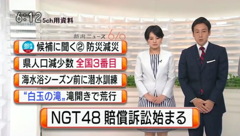 【NGT48暴行事件】NHK新潟のニュースでNGTの裁判が大々的に取り上げられる!!!!! 投稿日 2019年7月10日 22:24:00 (AKB関連) Tweet スポンサードリンク 続きを読む Source: AKB48タイムズ(AKB48まとめ) スポンサードリンク 続きを読む>> 最新情報 【朗報】AKB48のマレーシアイベント、大盛況で無事に終了!!! 【画像】この子アイドルで通用しますか?【HKT487期研究生 江浦優香13才】 【朗報】外ドラマ出演のAKB48山﨑空ちゃんの演技が上手いと話題に【あなたの恋人、強奪します。/そらら】 【朗報】近々新曲のMV撮影が行われる模様!【AKB48】 【朗報】19期研究生全員当たり!!!【AKB48劇場公演デビュー】 【朗報】ベルク×ニップン「AKB48 17期生 もちっとおいしいコラボキャンペーン」がスタート!!! 【速報】最新の久保怜音さんがキタ━━━━(゚∀゚)━━━━!!【元AKB48さとぴー】 【速報】STU48森下舞羽が卒業発表!!【まいはっち】 【AKB48】村山彩希さん、ついにインスタの個人アカウントを作る!!【ゆいリーInstagramデビュー】 【AKB48】クアラルンプール2日目、髙橋彩音ちゃんにぶっかけられて喜ぶ現地民をご覧下さい【マレーシア】 【悲報】地下アイドル現場怖い😱 女優業って正直ファンとしては辛い事ばかりで全然嬉しくないよね?【AKB48/SKE48/NMB48/HKT48/NGT48/STU48】 【朗報】元AKB48チームTP・邱品涵さん、福岡ソフトバンクホークスのチアガールに転身し大成功!!! 【AKB48】卒業記念生写真を出せるメンバーの基準ってどうなってんの? 【朗報】元AKB48奥原妃奈子さん、渋谷の大型ビジョンに現れる!【元チーム8ひーな】 昨日は岡田パッパの誕生日です【元AKB48岡田奈々】 【悲報】アイドルさん、ビラ配り中にまたしても酷い目に遭ってしまう【カリギュラのぶちあげイエロー担当ゆめぴりか】 【朗報】NGT48奈良未遥、ファースト写真集「こんな風に見られているのか?」7月1日発売決定!!! 【KLP48】クアラルンプール2日目に起こりそうなこと【AKB48】 今度こそ正真正銘のずっきーの谷間キタあああああ?【AKB48山内瑞葵】 【衝撃】松井珠理奈がアイドル復帰!マレーシア初の48姉妹グループ・KLP48プレイングマネージャーに就任決定!正式発表【元SKE48】 【AKB48】オリジナルステッカー販売終了のお知らせ【ピンポン玉チャレンジ】 【朗報】元馬嘉伶の真楪伶が1st写真集を発売決定!!【元AKB48・元まちゃりん・奇跡と出会った瞬間】 初めてAKB48劇場に入る私にアドバイス下さい!! スクエニ『トワツガイ』が僅か1年でサービス終了!大西桃香、渡辺みり愛、長谷川玲奈が実写化したのに【舞台化・元AKB48/元乃木坂46/元NGT48】 【悲報】=LOVE大谷映美里、体調不良のため本日の「個別お話し会」を欠席・・・【指原莉乃プロデュースアイドル・イコラブ・イコールラブ】 「ゆいずき」のダブルセンターというAKB48最強のカード【小栗有以・山内瑞葵】 【朗報】AKB48橋本陽菜、マレーシア移籍は断ったけど、旅行気分の数日間なら喜ぶ!!【はるぴょん】 【AKB48】メンバーが公演後に受け取ったファンレターをうpしてるのだが、どう思う? 【AKB48】正鋳真優「いつかAKBにチーム制を復活させたい」【まさるさん】 土屋太鳳の自撮りデカ乳旅wwwwwwww 【朗報】元NGT48菅原りこ半年ぶりのSR配信で視聴者数30000人突破!!!【りったん】