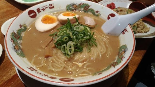 「天下一品」のこってりラーメンを初めて食べ、感想を述べた。