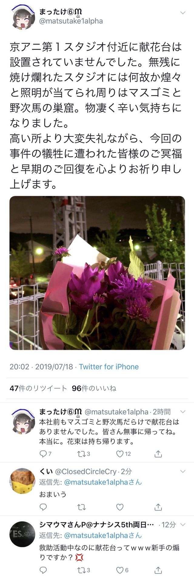 twitter民「京アニ本社に来たけどマスゴミと野次馬の巣窟でものすごくつらい気持ち」