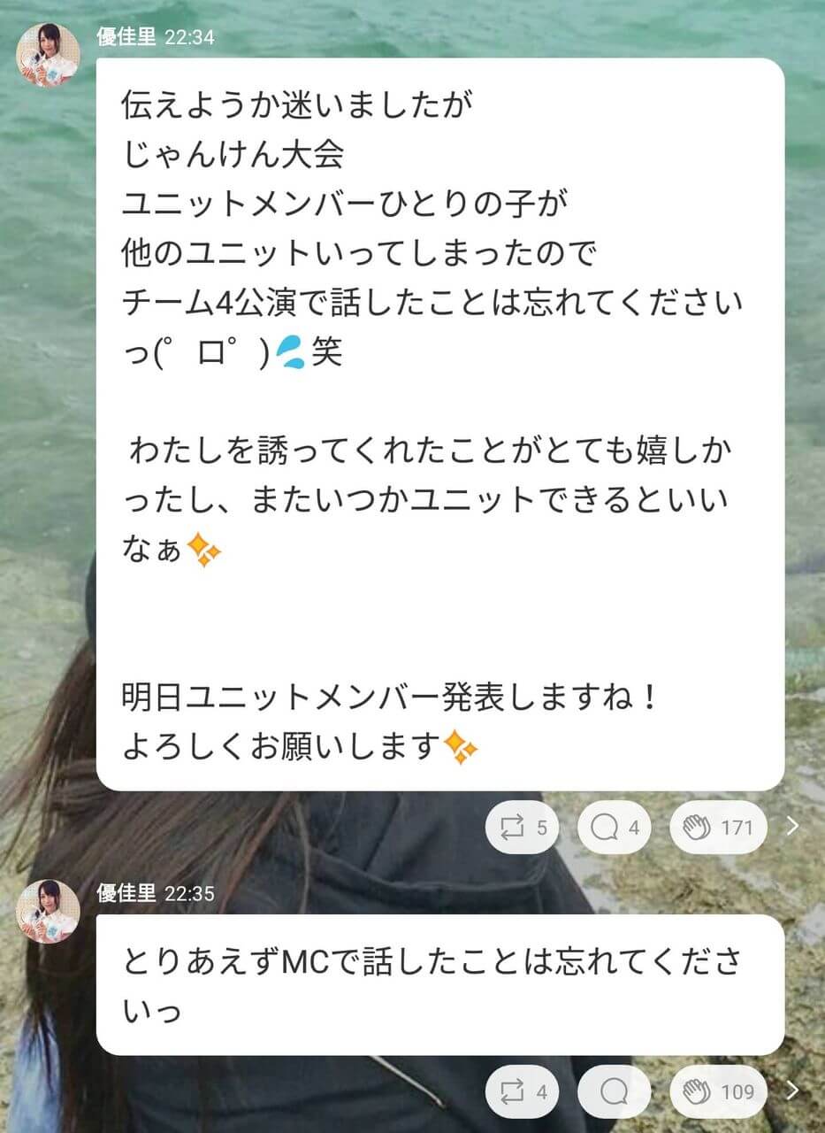 【悲報】佐々木優佳里「このMCメンバーの中にいます」→いませんでした・・・【AKB48グループユニットじゃんけん大会】 投稿日 2017年7月31日 08:07:49 (AKB関連) Tweet スポンサードリンク 続きを読む Source: AKB48タイムズ(AKB48まとめ) スポンサードリンク 続きを読む>> 最新情報 【朗報】AKB48のマレーシアイベント、大盛況で無事に終了!!! 【画像】この子アイドルで通用しますか?【HKT487期研究生 江浦優香13才】 【朗報】外ドラマ出演のAKB48山﨑空ちゃんの演技が上手いと話題に【あなたの恋人、強奪します。/そらら】 【朗報】近々新曲のMV撮影が行われる模様!【AKB48】 【朗報】19期研究生全員当たり!!!【AKB48劇場公演デビュー】 【朗報】ベルク×ニップン「AKB48 17期生 もちっとおいしいコラボキャンペーン」がスタート!!! 【速報】最新の久保怜音さんがキタ━━━━(゚∀゚)━━━━!!【元AKB48さとぴー】 【速報】STU48森下舞羽が卒業発表!!【まいはっち】 【AKB48】村山彩希さん、ついにインスタの個人アカウントを作る!!【ゆいリーInstagramデビュー】 【AKB48】クアラルンプール2日目、髙橋彩音ちゃんにぶっかけられて喜ぶ現地民をご覧下さい【マレーシア】 【悲報】地下アイドル現場怖い😱 女優業って正直ファンとしては辛い事ばかりで全然嬉しくないよね?【AKB48/SKE48/NMB48/HKT48/NGT48/STU48】 【朗報】元AKB48チームTP・邱品涵さん、福岡ソフトバンクホークスのチアガールに転身し大成功!!! 【AKB48】卒業記念生写真を出せるメンバーの基準ってどうなってんの? 【朗報】元AKB48奥原妃奈子さん、渋谷の大型ビジョンに現れる!【元チーム8ひーな】 昨日は岡田パッパの誕生日です【元AKB48岡田奈々】 【悲報】アイドルさん、ビラ配り中にまたしても酷い目に遭ってしまう【カリギュラのぶちあげイエロー担当ゆめぴりか】 【朗報】NGT48奈良未遥、ファースト写真集「こんな風に見られているのか?」7月1日発売決定!!! 【KLP48】クアラルンプール2日目に起こりそうなこと【AKB48】 今度こそ正真正銘のずっきーの谷間キタあああああ?【AKB48山内瑞葵】 【衝撃】松井珠理奈がアイドル復帰!マレーシア初の48姉妹グループ・KLP48プレイングマネージャーに就任決定!正式発表【元SKE48】 【AKB48】オリジナルステッカー販売終了のお知らせ【ピンポン玉チャレンジ】 【朗報】元馬嘉伶の真楪伶が1st写真集を発売決定!!【元AKB48・元まちゃりん・奇跡と出会った瞬間】 初めてAKB48劇場に入る私にアドバイス下さい!! スクエニ『トワツガイ』が僅か1年でサービス終了!大西桃香、渡辺みり愛、長谷川玲奈が実写化したのに【舞台化・元AKB48/元乃木坂46/元NGT48】 【悲報】=LOVE大谷映美里、体調不良のため本日の「個別お話し会」を欠席・・・【指原莉乃プロデュースアイドル・イコラブ・イコールラブ】 「ゆいずき」のダブルセンターというAKB48最強のカード【小栗有以・山内瑞葵】 【朗報】AKB48橋本陽菜、マレーシア移籍は断ったけど、旅行気分の数日間なら喜ぶ!!【はるぴょん】 【AKB48】メンバーが公演後に受け取ったファンレターをうpしてるのだが、どう思う? 【AKB48】正鋳真優「いつかAKBにチーム制を復活させたい」【まさるさん】 今年のヒット曲がガチでゼロなんだけどなんで? 【女子アナ】高橋真麻「たわわな1キロ胸が机の上にこんもり」ショットの衝撃度!