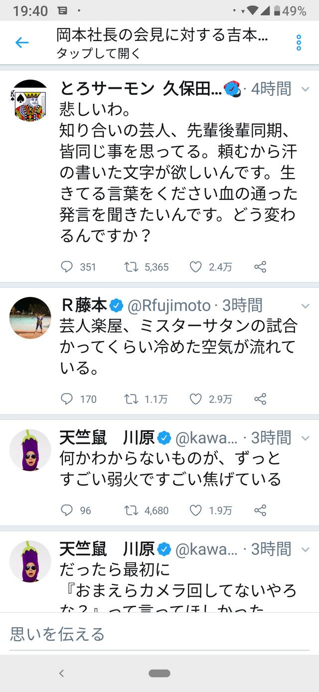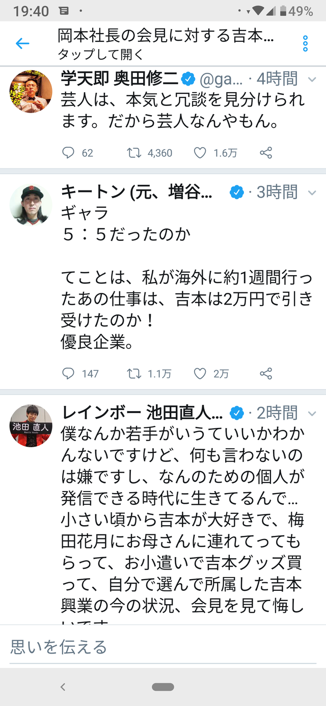 吉本芸人さん、岡本会見で一斉に不満を呟き反旗を翻す