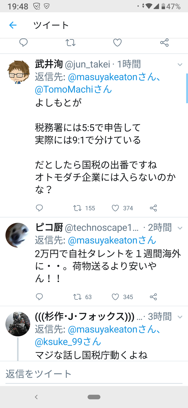特にキートンの暴露は吉本が税金申告をちょろまかしてると取れる模様