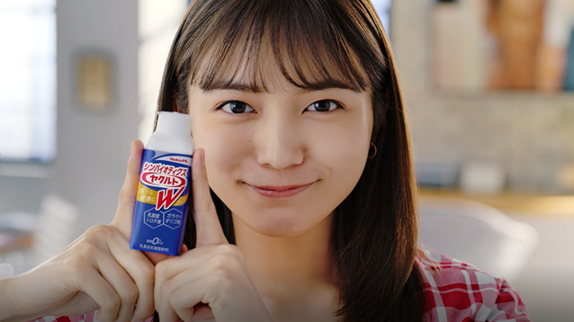 コンビニで「先輩!」と声をかけられ振り返ると、棚の陰から川口春奈さんが登場。健康に気を遣うなら…と、「シンバイオティクス ヤクルトW」をオススメしてくれます。