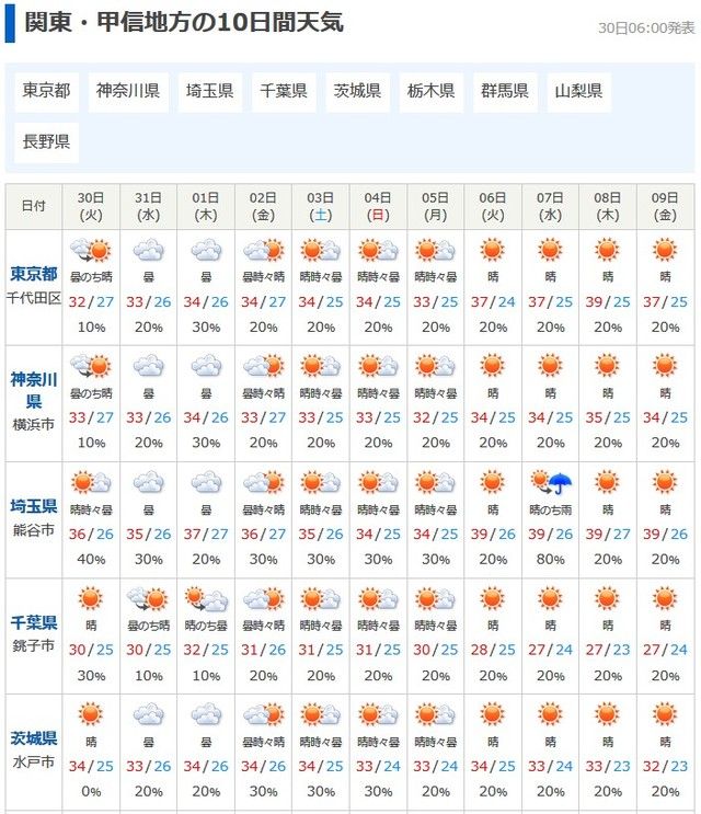 【悲報】来週から名古屋40℃ 東京大阪39℃の猛暑に