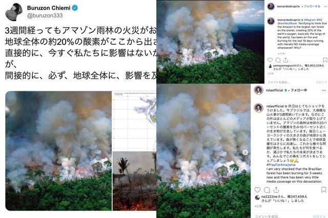 ローラやブルゾンちえみも拡散。アマゾン火災で世界に「無関係」な写真が広がる