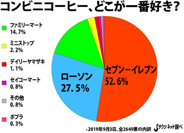 Jタウンネットでは2019年8月20日から9月3日まで、「コンビニコーヒー、どこが一番好き?」と題して読者アンケートを行った(総投票数2649票)。はたして、ナンバーワンに輝いたチェーンはどこだ――。