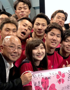 池江はチームメートとおそろいのTシャツを身につけ、応援席で声をからし続けた。マネジメント会社を通じて「総合優勝とてもうれしかったです。