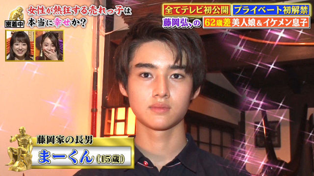 15歳の長男は、太い眉毛がパパ似。すらりとした長身で色白、ミックス(ハーフ)のような顔立ちで、顔が初公開されると、スタジオには「お~!」「かっこいい!」などの声があがった。進行役の今田耕司も「お兄ちゃん、男前やな~」と一言。ネット上にも「美形すぎる」「イケメンすぎ」「かっこいい」などのツイートがあがる反響となっている。