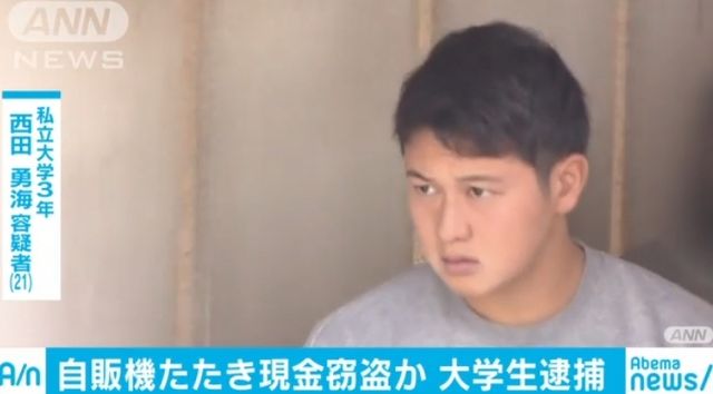 自販機ワンパン400円。計12000円ゲットした大学生の西田くん(21)を逮捕 「歌舞伎町で教えてもらった」