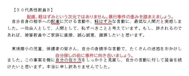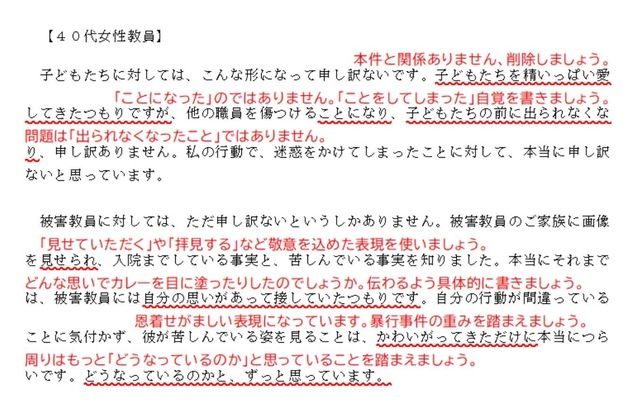 【悲報】東須磨教員いじめの加害者が出した謝罪文、酷すぎて赤ペン添削される