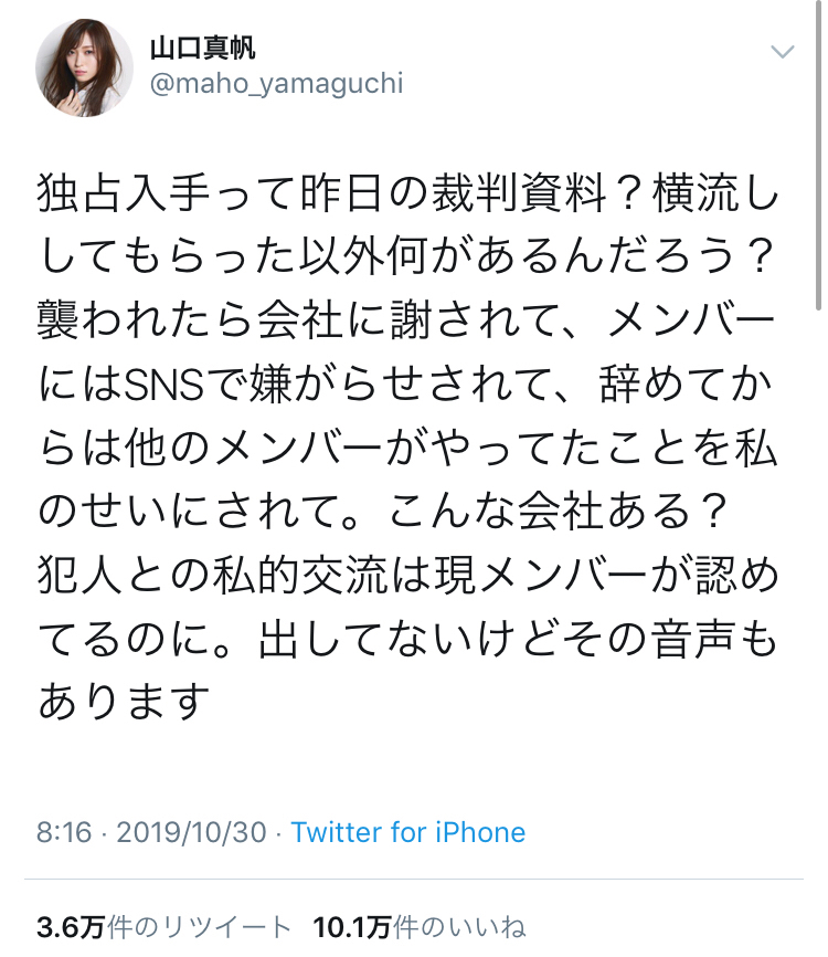 【朗報】元NGT48山口真帆のスポニチへの反論ツイート、遂に10万いいね突破【まほほん】 投稿日 2019年11月2日 13:19:50 (AKB関連) Tweet スポンサードリンク 続きを読む Source: AKB48タイムズ(AKB48まとめ) スポンサードリンク 続きを読む>> 最新情報 【朗報】AKB48のマレーシアイベント、大盛況で無事に終了!!! 【画像】この子アイドルで通用しますか?【HKT487期研究生 江浦優香13才】 【朗報】外ドラマ出演のAKB48山﨑空ちゃんの演技が上手いと話題に【あなたの恋人、強奪します。/そらら】 【朗報】近々新曲のMV撮影が行われる模様!【AKB48】 【朗報】19期研究生全員当たり!!!【AKB48劇場公演デビュー】 【朗報】ベルク×ニップン「AKB48 17期生 もちっとおいしいコラボキャンペーン」がスタート!!! 【速報】最新の久保怜音さんがキタ━━━━(゚∀゚)━━━━!!【元AKB48さとぴー】 【速報】STU48森下舞羽が卒業発表!!【まいはっち】 【AKB48】村山彩希さん、ついにインスタの個人アカウントを作る!!【ゆいリーInstagramデビュー】 【AKB48】クアラルンプール2日目、髙橋彩音ちゃんにぶっかけられて喜ぶ現地民をご覧下さい【マレーシア】 【悲報】地下アイドル現場怖い😱 女優業って正直ファンとしては辛い事ばかりで全然嬉しくないよね?【AKB48/SKE48/NMB48/HKT48/NGT48/STU48】 【朗報】元AKB48チームTP・邱品涵さん、福岡ソフトバンクホークスのチアガールに転身し大成功!!! 【AKB48】卒業記念生写真を出せるメンバーの基準ってどうなってんの? 【朗報】元AKB48奥原妃奈子さん、渋谷の大型ビジョンに現れる!【元チーム8ひーな】 昨日は岡田パッパの誕生日です【元AKB48岡田奈々】 【悲報】アイドルさん、ビラ配り中にまたしても酷い目に遭ってしまう【カリギュラのぶちあげイエロー担当ゆめぴりか】 【朗報】NGT48奈良未遥、ファースト写真集「こんな風に見られているのか?」7月1日発売決定!!! 【KLP48】クアラルンプール2日目に起こりそうなこと【AKB48】 今度こそ正真正銘のずっきーの谷間キタあああああ?【AKB48山内瑞葵】 【衝撃】松井珠理奈がアイドル復帰!マレーシア初の48姉妹グループ・KLP48プレイングマネージャーに就任決定!正式発表【元SKE48】 【AKB48】オリジナルステッカー販売終了のお知らせ【ピンポン玉チャレンジ】 【朗報】元馬嘉伶の真楪伶が1st写真集を発売決定!!【元AKB48・元まちゃりん・奇跡と出会った瞬間】 初めてAKB48劇場に入る私にアドバイス下さい!! スクエニ『トワツガイ』が僅か1年でサービス終了!大西桃香、渡辺みり愛、長谷川玲奈が実写化したのに【舞台化・元AKB48/元乃木坂46/元NGT48】 【悲報】=LOVE大谷映美里、体調不良のため本日の「個別お話し会」を欠席・・・【指原莉乃プロデュースアイドル・イコラブ・イコールラブ】 「ゆいずき」のダブルセンターというAKB48最強のカード【小栗有以・山内瑞葵】 【朗報】AKB48橋本陽菜、マレーシア移籍は断ったけど、旅行気分の数日間なら喜ぶ!!【はるぴょん】 【AKB48】メンバーが公演後に受け取ったファンレターをうpしてるのだが、どう思う? 【AKB48】正鋳真優「いつかAKBにチーム制を復活させたい」【まさるさん】 徳井義実、所得隠しや散財生活よりも驚かされた「無保険状態」 医療費は10割負担 笑っていいとも最終回で株を上げた芸人と下げた芸人の二極化wwwwww